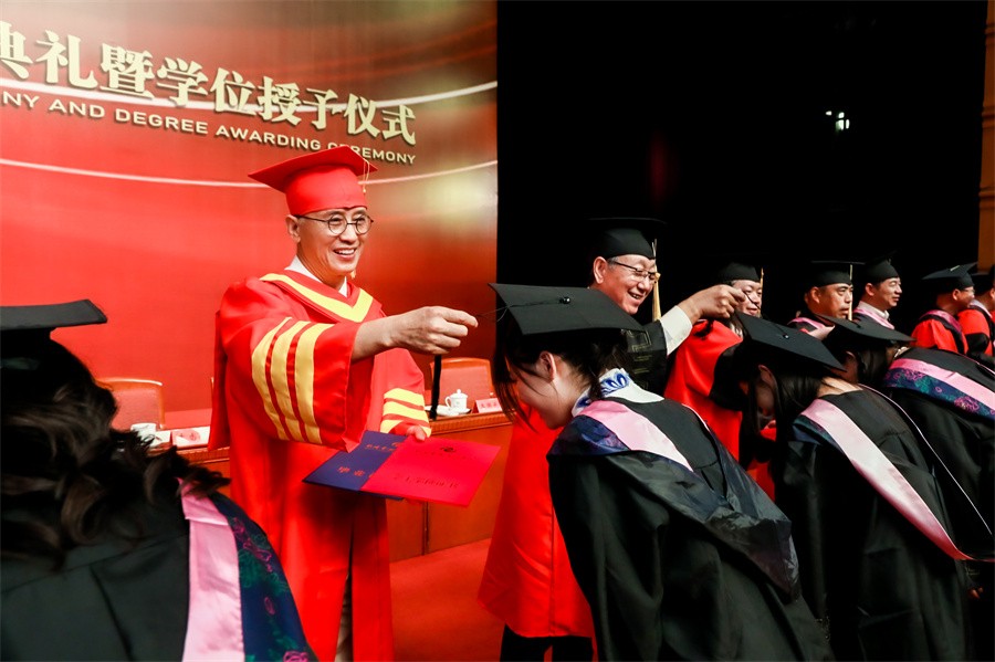 学校领导及学位评定委员会委员为毕业生颁发证书