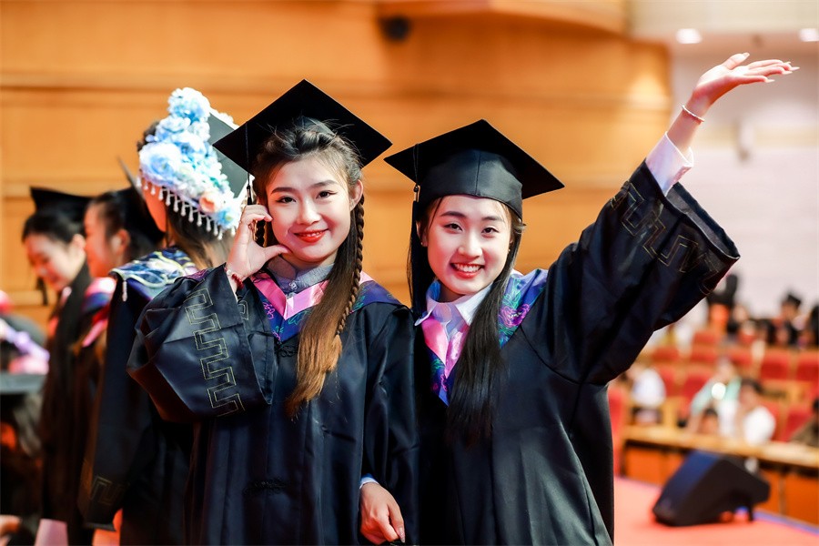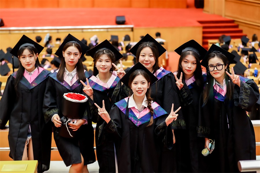典礼上,学校学位评定委员会委员为毕业生代表颁发毕业证书和学位证书并一一拨穗正冠,合影留念。岁月悠悠,师恩难忘,情谊长存;学子毕业礼成,满怀激动,感恩师恩,怀揣梦想,斗志昂扬。