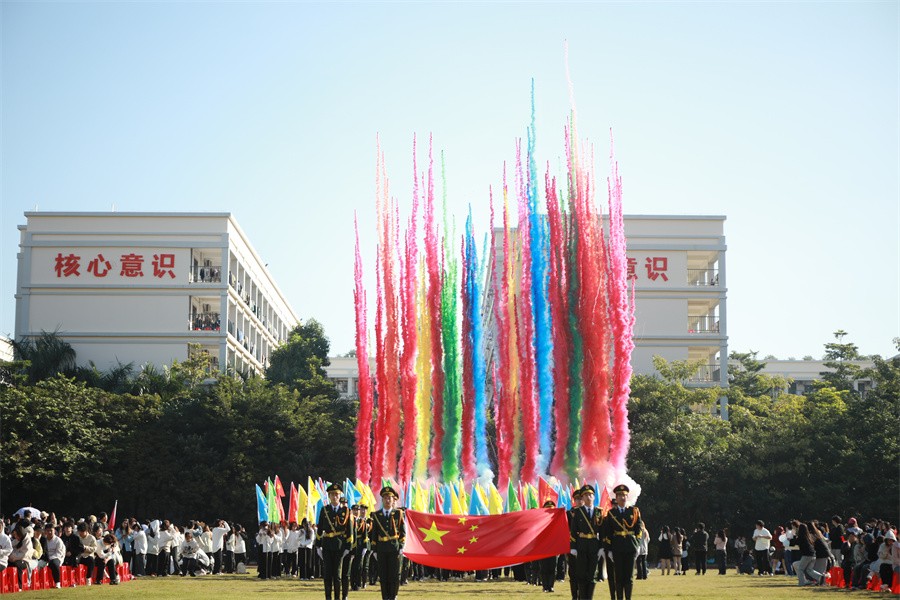 在学校党委书记覃宪儒的高声宣布下,礼炮直冲云霄,彩烟绚丽飞扬,一年一度的校园运动会就此火热开场。北海艺术设计学院第十六届运动会正式进入为期两天的比赛日程。