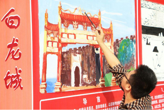 艺术本身就是一场风景,让我们在每一个地点,遇见不同的风景,给予我们无限的遐想。2015年12月13日,动画学院受邀参加合浦白龙城壁画公益活动。动画学院17位学生在龚为、陈丽等5名老师的带领下,利用周末空余时间,共赴合浦绘制《珠还合浦》壁画。合浦县位于广西壮族自治区南端,北部湾东北岸,独特的艺术壁画绘于岩石与岩壁上,给古老的建筑带来了一抹神秘的色彩。