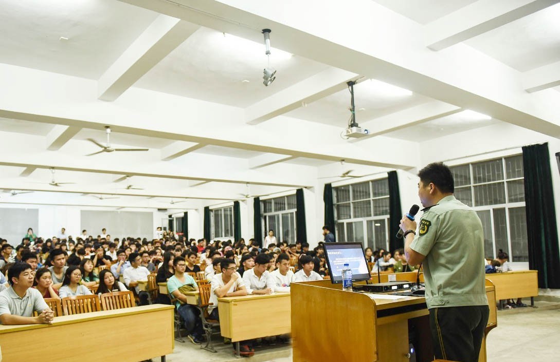 紧接着,由龙潭边防派出所的晋警官针对“校园诈骗”的案例进行讲述。晋警官通过实际案例和日常派出所警官们亲身接触的案件,为我们讲述了目前大学生身边主要存在的安全隐患问题,其中包括网络各种形式的诈骗,对大学生如何避免诈骗事件的发生以及遭遇诈骗时如何处理做了详细指导。讲座中龙潭边防派出所的警官们非常有耐心的回答着大家提出的问题,也非常细心地帮助我们普及日常所疏忽的安全问题。