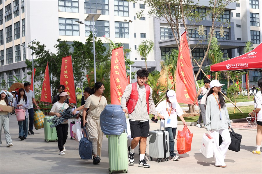 奋楫扬帆正当时,不负韶华行且知。祝愿2025级全体新生以此次入学为新起点,带着朝气与梦想投入大学生活,在知识的海洋中汲取养分、自由翱翔,在广阔的人生舞台上挥洒青春、绽放光彩,书写更加精彩的新篇章!(大学生记者团、周小琪、郭松/摄)