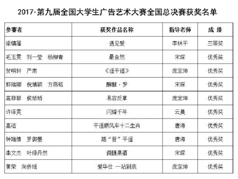 我校学子在第九届全国大学生广告艺术大赛再创佳绩