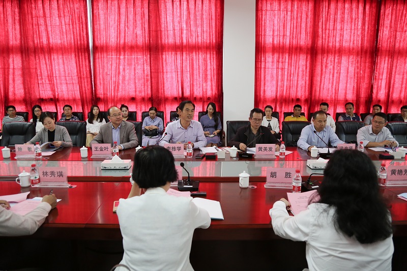 汇报会上,李栋学组长传达了教育厅此次年检工作的要求,我校副校长胡胜从办学定位、办学成果、管理机构和制度建设、办学条件、师资队伍、招生及学位证书管理、资产与财务管理、和谐校园建设等方面,详细介绍了学校2017年度发展建设情况。随后,检查组根据年检内容,详细询问、核查年检档案资料,并分别召开师生座谈会了解情况。