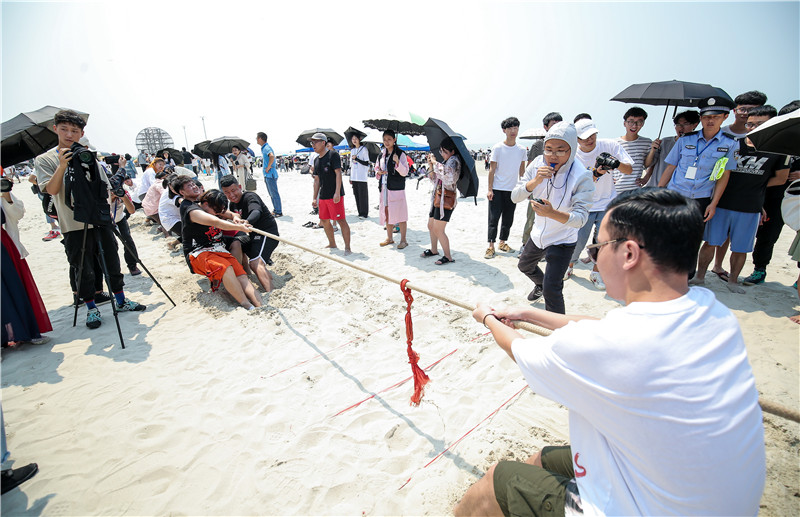 赛场上选手努力拼搏,场外同学积极摇旗呐喊,为各自班级的荣誉争光。整个沙滩运动场洋溢的青春活力如同天空的烈日骄阳,青春、蓬勃、骄傲。赛场每一处都穿梭着运动员傲人的身姿、昂扬的斗志。场外的欢呼声不绝于耳,回荡在银滩的空气中。