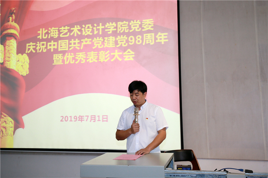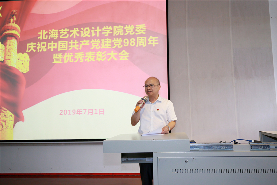 校党委书记李高南同志在会上发表讲话,他首先代表学校党委向受表彰的先进集体和个人表示祝贺和敬意,向全校党员、教职员工致以节日的问候。他在讲话中回顾了党的光辉历程,结合学校党建实际对我校各级党组织和党员同志提出了几点要求,一是坚决维护中国共产党的领导,进一步坚定理想信念,把党的领导贯穿办学治校、教书育人全过程,统筹推进学校三全育人工作; 二是认真学习贯彻落实习近平总书记关于教育的一系列论述,提高培养高素质人才的历史担当;三是认真抓好 “不忘初心,牢记使命”主题教育活动,发挥基层党组织战斗堡垒和党员先锋模范作用,积极投身到教育教学的改革浪潮中,为推动学校的改革发展做出新的更大贡献。