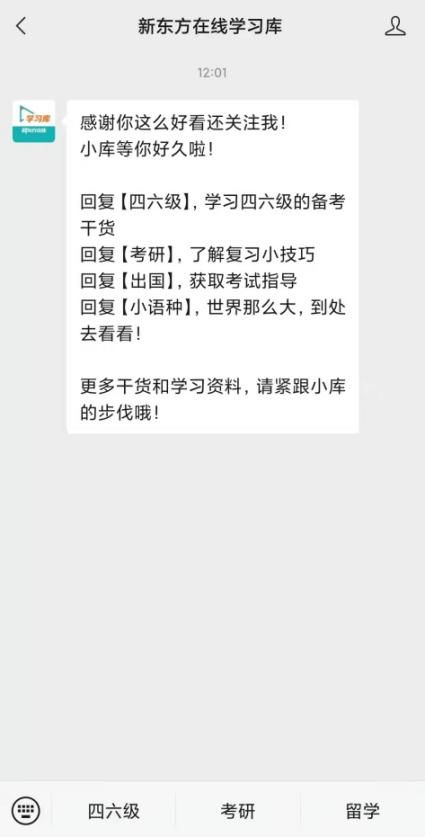3、微信端:关注新东方学习库公众号:xdflibrary,即可开启微信学习。