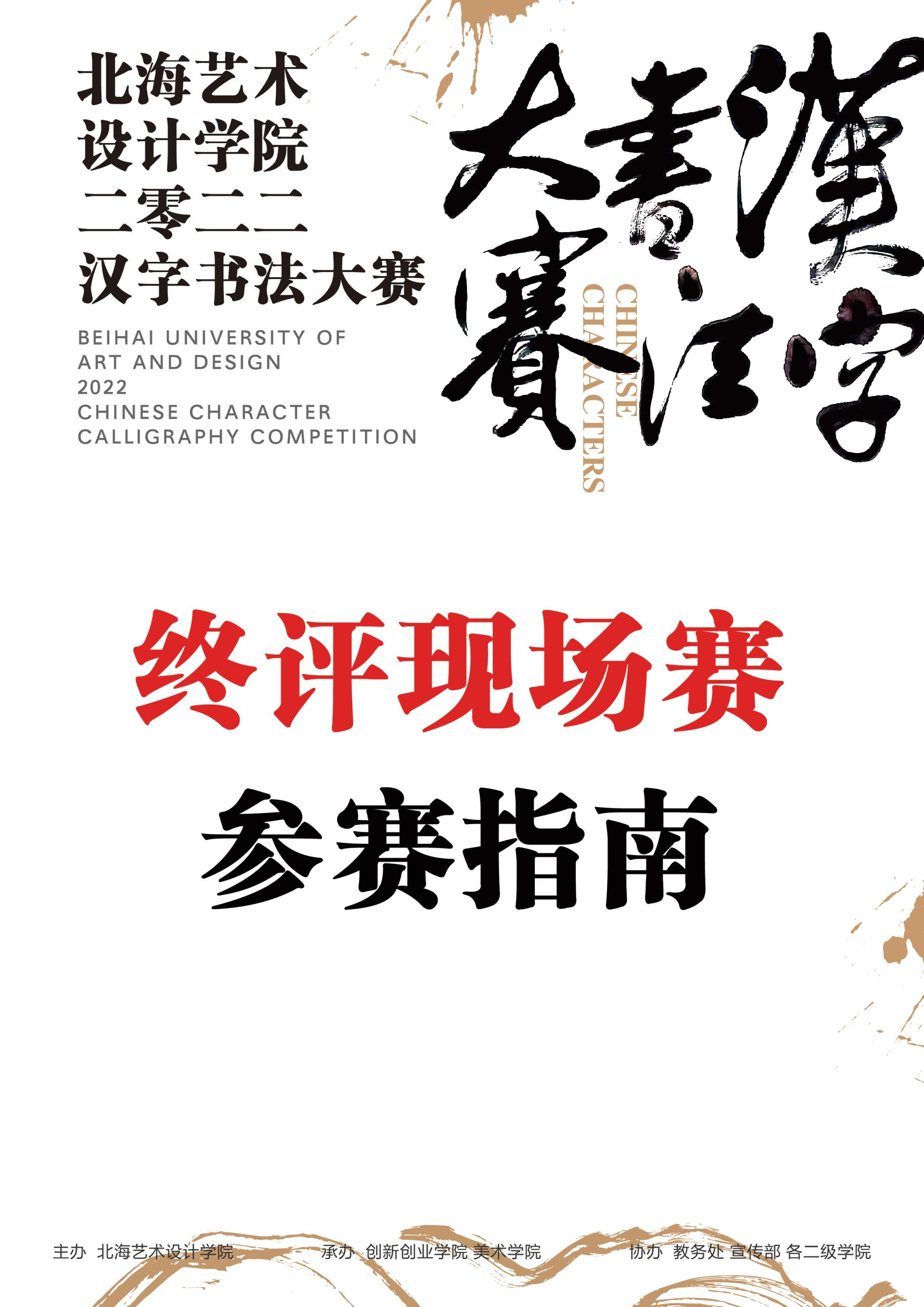 3.具体参赛细节请参考北海艺术设计学院2022年汉字书法大赛终评现场赛参赛指南(详见附件2)。