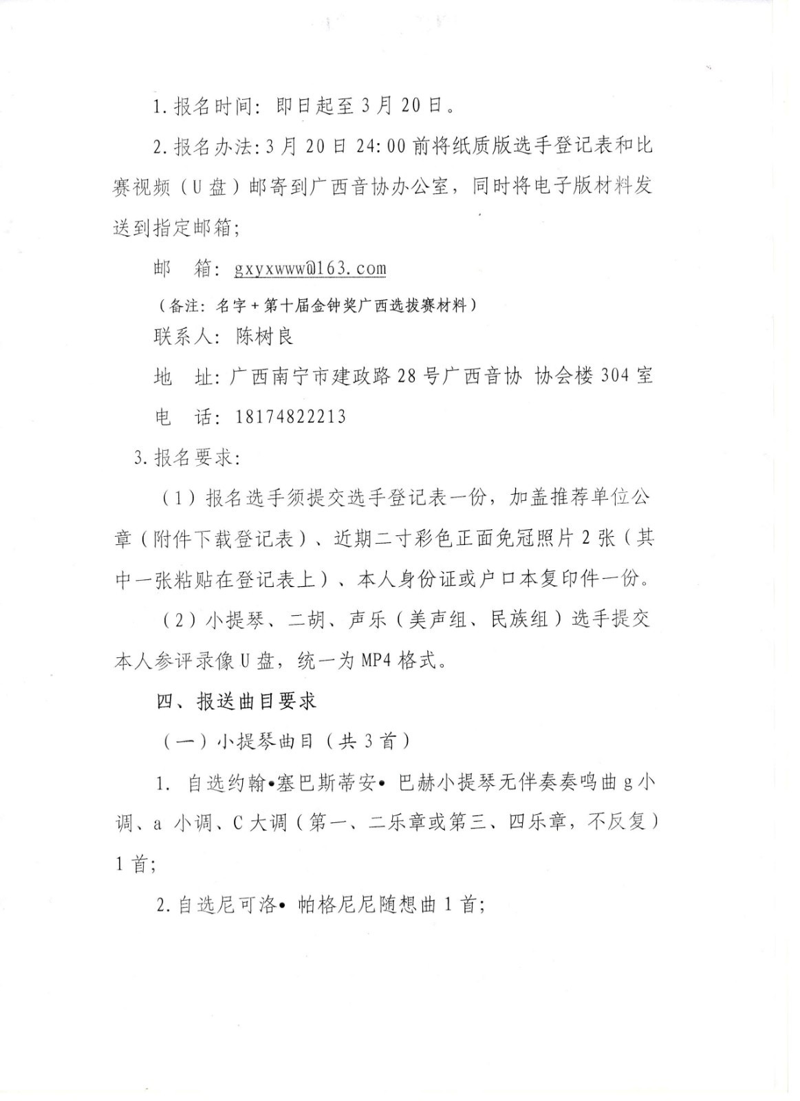 关于举办第十四届中国音乐金钟奖广西选拔赛的通知