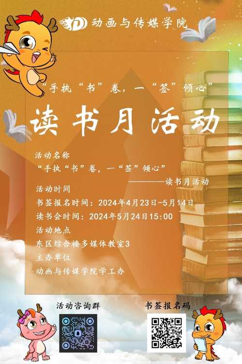 “阅读启智,书香润心”。在春意盎然的四月,我们迎来了第29个“世界读书日”,同时,这个月也承载着我国全民阅读月的深厚内涵。对于热爱读书的人来说,每一个日子都仿佛是专为阅读而设,但在这个特别的日子里,我们更愿与全校师生共同庆祝,一起参与动画与传媒学院精心策划的“手执‘书’卷,一‘签’倾心”读书活动交流会。