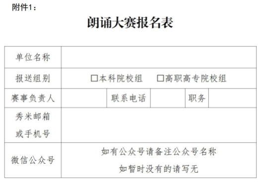 (二)朗诵要求。使用普通话朗诵,时长严格控制在3—5分钟内。