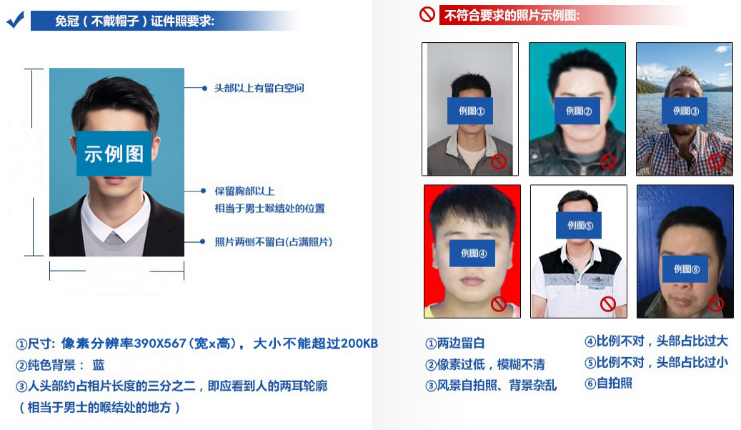 照片应为生本人近期正面免冠半身证件照,不得使用生活照、美颜照。