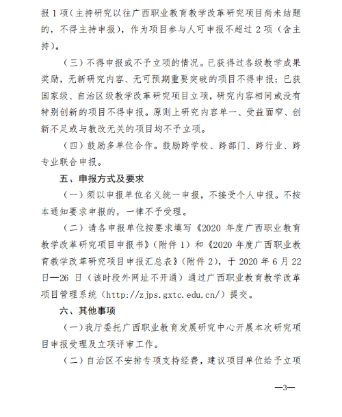 自治区教育厅关于组织申报2020年度 广西职业教育教学改革研究项目的通知