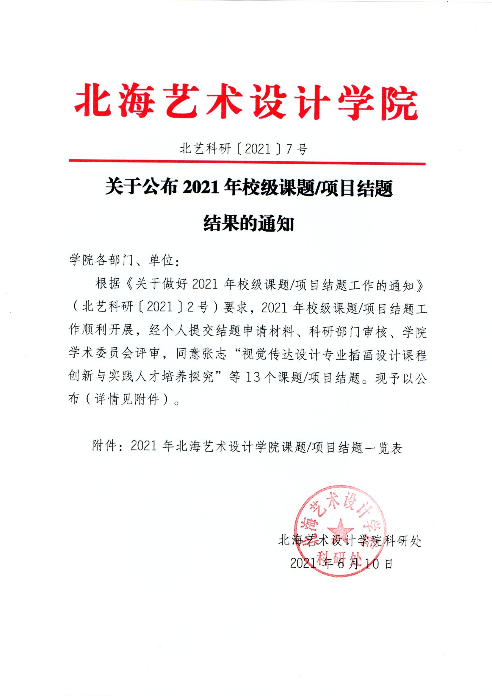 关于公布2021年校级课题/项目结题结果的通知