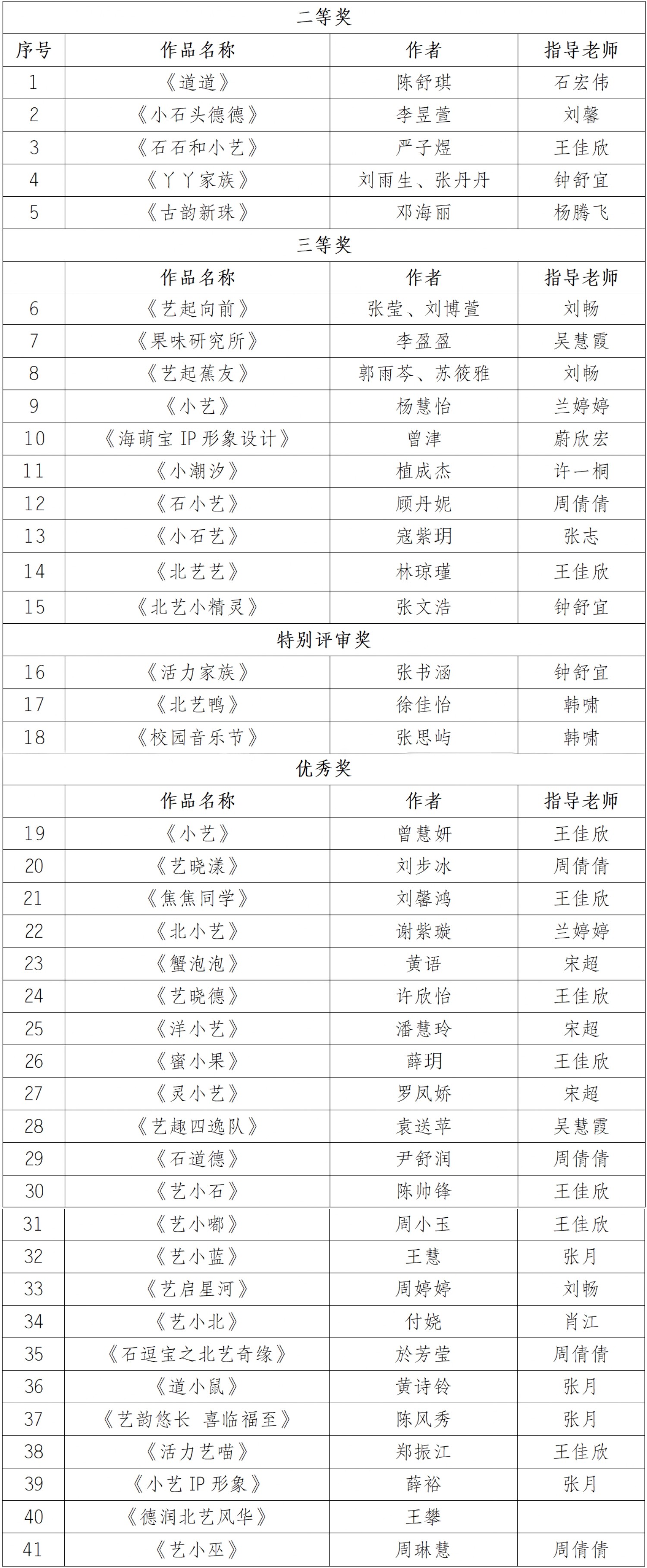 由党委宣传部主办的学校官微IP形象创意设计大赛评审工作已顺利完成,自活动启动以来,受到了广大师生的大力支持。大赛评审团秉持公平、公正、专业,以及质量优先、宁缺毋滥的原则,按照大赛工作方案,邀请专业资深教师担任评委。在初评后,主办单位将评选出38件入围作品在网上投票,得到师生的高度关注,收到了宝贵的意见建议。综合各方意见,经大赛组委会研究决定,一等奖空缺,选出二等奖5件,三等奖10件,特别评审奖3件,优秀奖23件。具体名单如下。