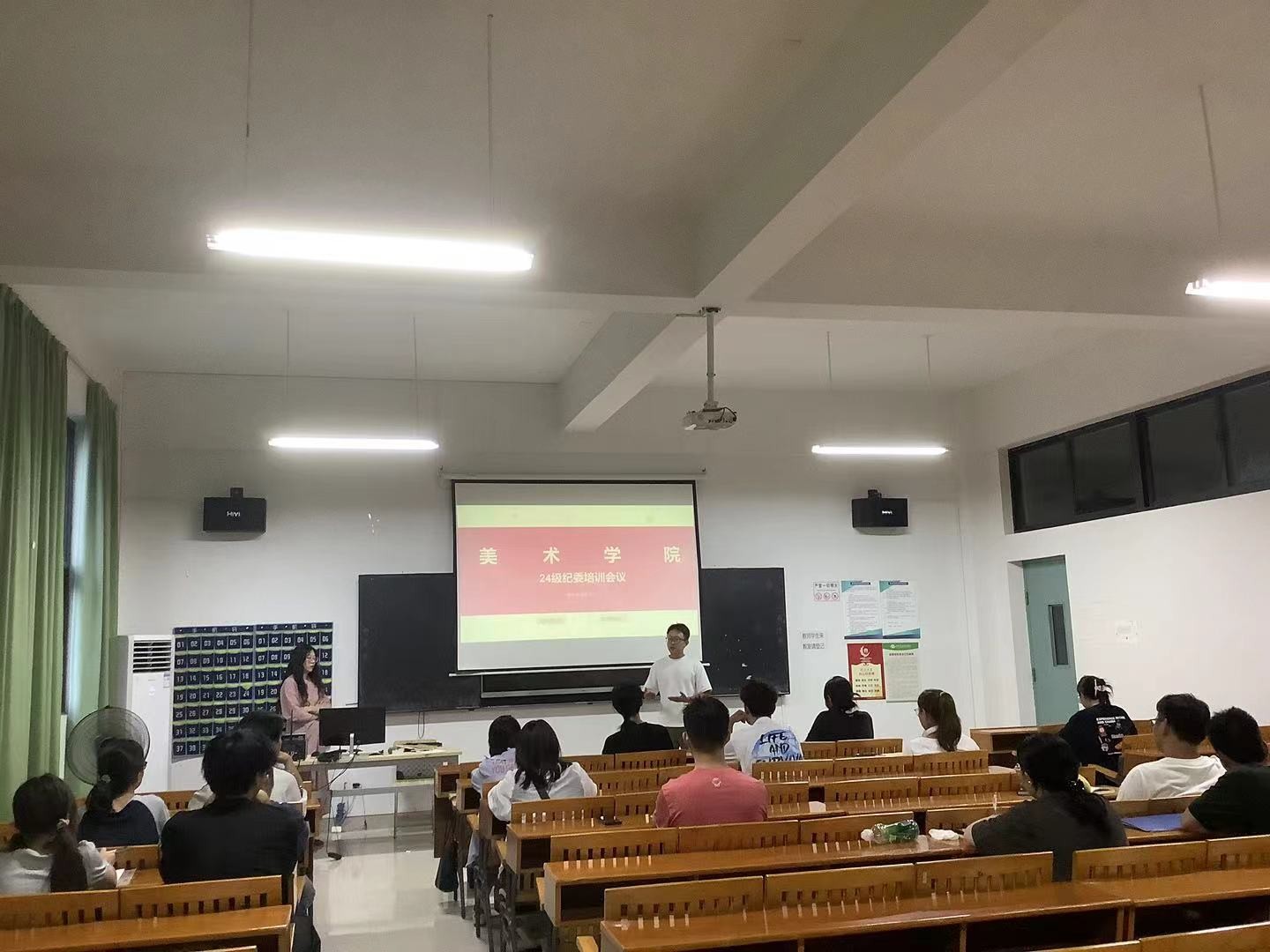 9月18日晚,美术学院学工办于艺术楼314召开2024-2025学年第一学期纪委工作暨2024级纪委培训会,会上肯定了2022-2023级纪委过去一年的工作,同时欢迎作为新生力量的2024级新生纪委加入,并对新学年的学生工作做出切实的安排。会议由美术学院学工办庄嘉伊老师主持,学院副院长殷声、学工办主任林昌华,出席会议并作工作指导。