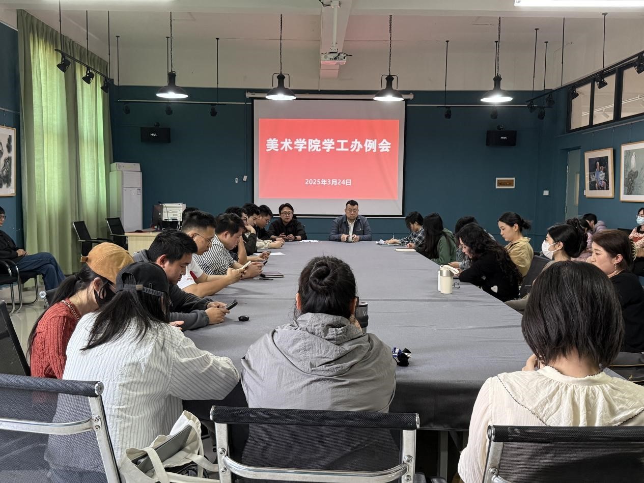 3月24日,美术学院学工办于艺术楼313召开新学期工作部署会,会议由美术学院党总支副书记鲁明阳主持,学工办教师及各班级辅导员参加会议。