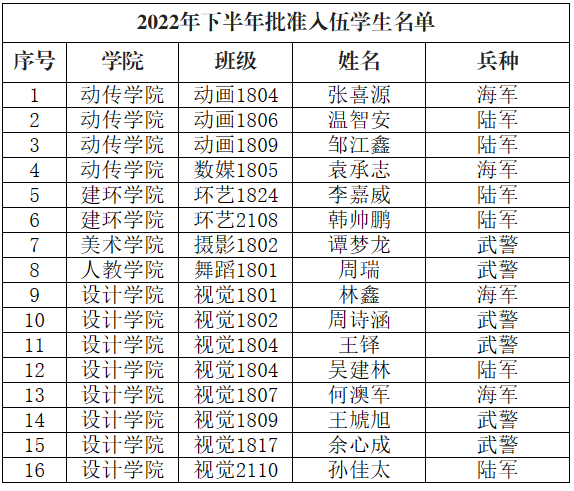 保家卫国终不悔,绿色军营献青春。金秋九月,学校2022年下半年征兵工作落下帷幕,9月15日,学工处处长班媚到广西民兵训练基地给在校报名应征并被批准入伍的学生召开入伍欢送会。