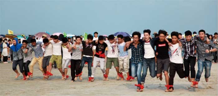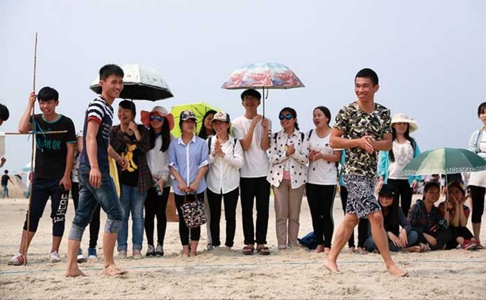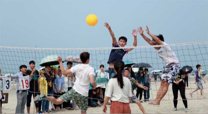 伴随一声枪响,全院师生迎着朝阳积极奔赴各个项目竞赛场地,开启朝气蓬勃的一天。本次沙滩运动会除了安排有8×50米迎面接力,排球等传统竞技比赛项目之外,还安排了拔河、六人七足、笨猪跳等趣味竞技项目。各班参赛队伍奋力拼搏、配合默契,在各个项目中尽情展现青春力量。六人七足和笨猪跳比赛中,队员们考默契、拼团结,努力将步伐协调一致;8×50米迎面接力赛场上,队员们克服沙滩上举步维艰,奋力向前奔跑,传递掌心的力量;拔河比赛中,各班参赛队员伴随响亮的口号,卯足了劲、憋红了脸争夺绳子上象征胜利红布条;沙滩排球赛强手倍出,一个个跳跃的身姿展现着激情与力量