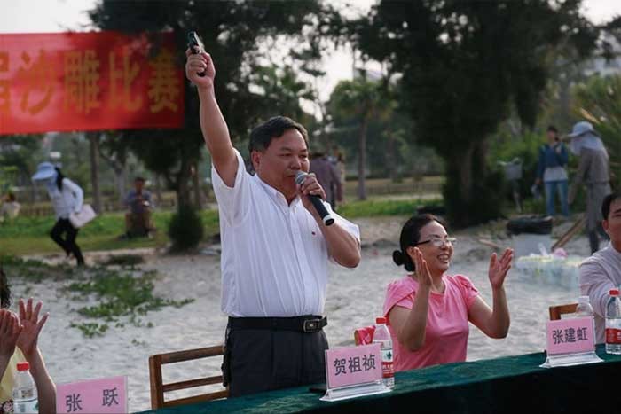 上午8:00,运动会开幕式准时开始,开幕式由学院彭仁副院长主持。出席本次运动会的领导有学院党委书记贺祖祯,常务副院长张建虹,副院长张跃、林秀琪、王斌,以及各二级学院领导和各处室负责人。开幕式上,学院副院长林秀琪致开幕词,王竞毅同学和王瑞轩老师分别代表运动员、裁判员宣誓;学院党委书记贺祖祯同志鸣放比赛第一枪并宣布第十五届沙滩运动会暨第十一届沙雕比赛开幕。