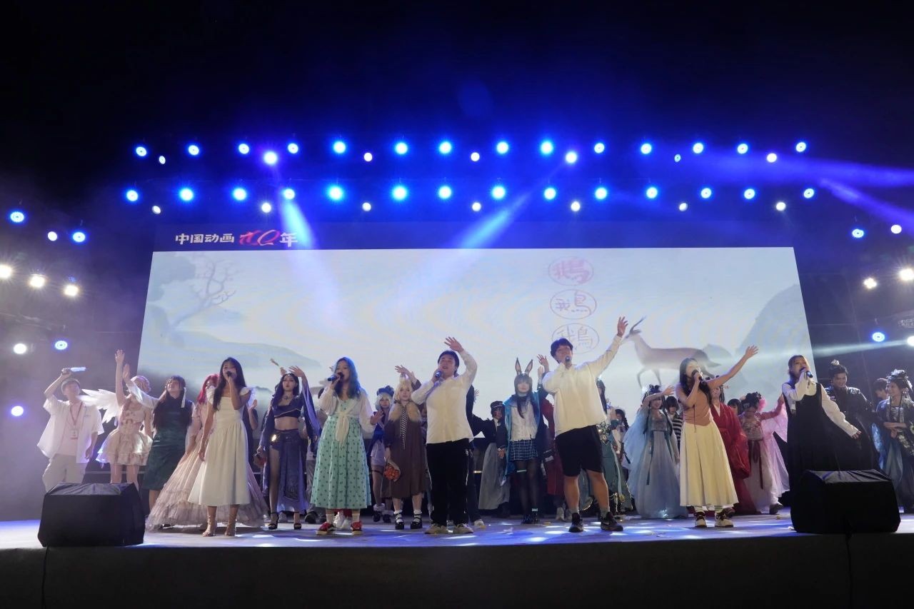 动漫配音《长安三万里》 在“悦动青春”篇章中,《英雄联盟串烧》将青春与游戏热舞完美结合,展现了年轻人的活力与热情。舞蹈《聊斋》则带领观众踏入了一个神秘而又迷人的世界,感受着那些古老的传说和神秘的故事。《动漫歌曲串烧》更是带领观众重温了《灌篮高手》《哪吒》等经典动漫的旋律,让人热血沸腾。 走秀《第五人格》在荒废已久的庄园拉开帷幕,为我们带来一场视觉盛宴。 最后,“薪火相传”篇章以《天空之城》的旋律作为背景音乐,带领观众走进了那座梦想之城。 “一帧朝与暮,一帧爱与苦。那些青葱岁月间,玲珑少年已楚楚。”中国动画百年纪念曲目《美美》则以动人的旋律和真挚的歌词回顾了中国动画的百年历程,展现了民族动画气派的传承与弘扬。 随着中国动画百年纪念曲目《美美》的落幕,本次动漫晚会也在一片欢呼声中圆满结束,晚会结束,但热情还未散去;晚会结束,但传承仍在继续。希望北艺学子们能在甲辰龙年添上更多的精彩与回忆。(胡睿、钟佳怡、曹淳棋、李妍淇、左娇娇、陈晓仙、张志宽、杨子恒、孙浩宇、王静,沈思慧、马雅楠、肖远煜、李壮壮/摄) 动漫晚会演职人员合影留念《原神!启动》cos走秀