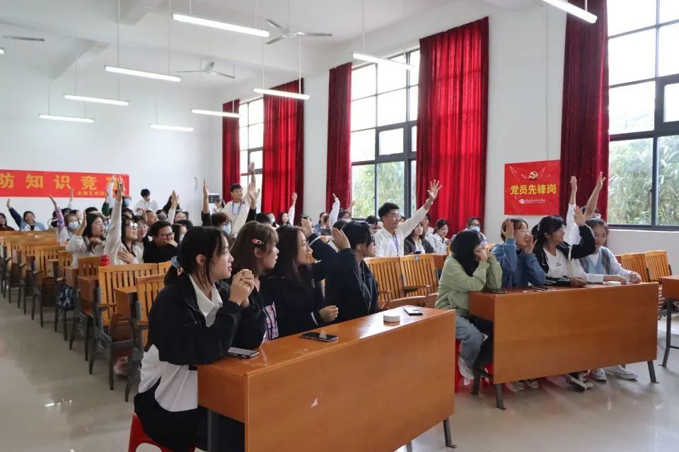 为构建和谐校园,进一步加大学校消防宣传力度,增强广大师生的消防安全意识、消防法制观念,营造人人参与消防,人人关心消防的良好氛围。于2021年11月14日在功德楼114教室举行了消防知识竞赛活动。比赛开始前,参赛选手在工作人员的引导下有序地签到并落座。在答题互动环节中,同学们热情高涨。