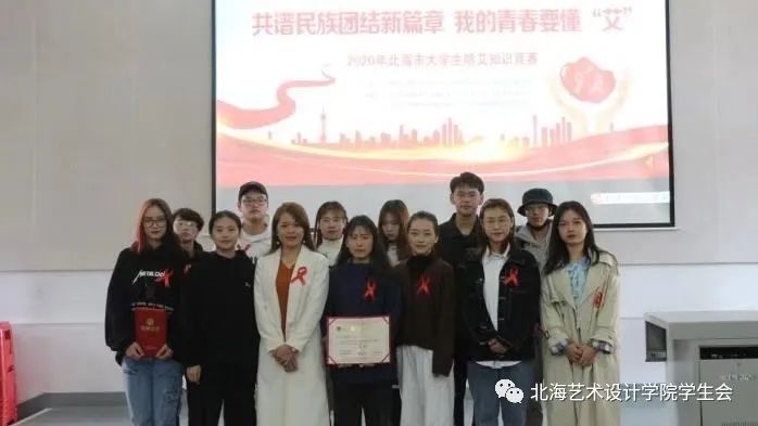 11月29日上午,由共青团北海市委员会、北海市青年联合会、北海市学生联合会主办,北海市长青社会工作服务中心、北海市青少年发展服务中心、北海艺术设计学院团委、学生会、北海职业学院团委、学生会共同承办的“弘扬社会主义核心价值观 共谱民族团结新篇章”我的青春要懂“艾”——2020年北海市大学生防艾知识竞赛活动在我校举行。来自北海职业学院及北海艺术设计学院的6支高校学生队伍参与竞赛,100余名大学生现场观赛。