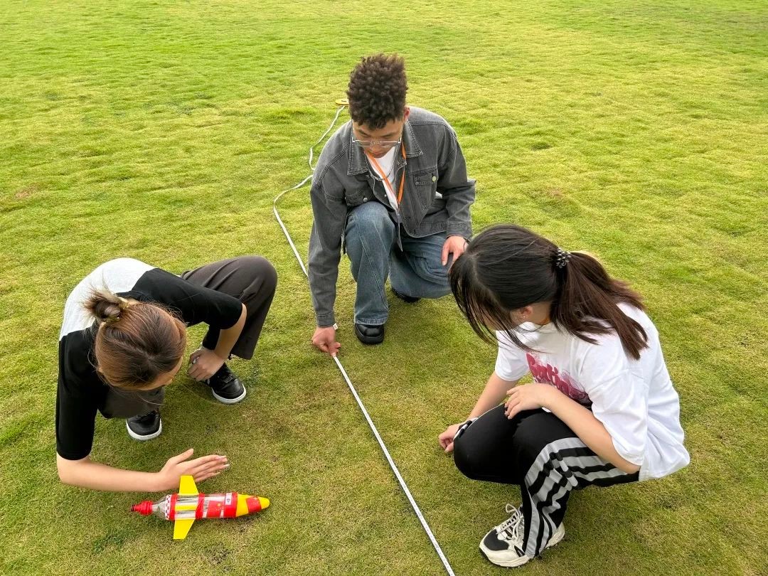 水火箭是寓教于乐、科技含量高、深受学生喜爱的科普教材,可以让学生直观了解导弹,运载火箭的发射升空。本次比赛不仅为选手提供了一个展示自我的平台,更重要的是丰富了同学们的课余生活,挖掘了学生科技创新的才华,贯彻理论与实践相结合的理念。同时也宣扬“变废为宝”的观念,倡导了低碳节能环保的科技发明精神。(丁泓尹、孙露怡/摄)