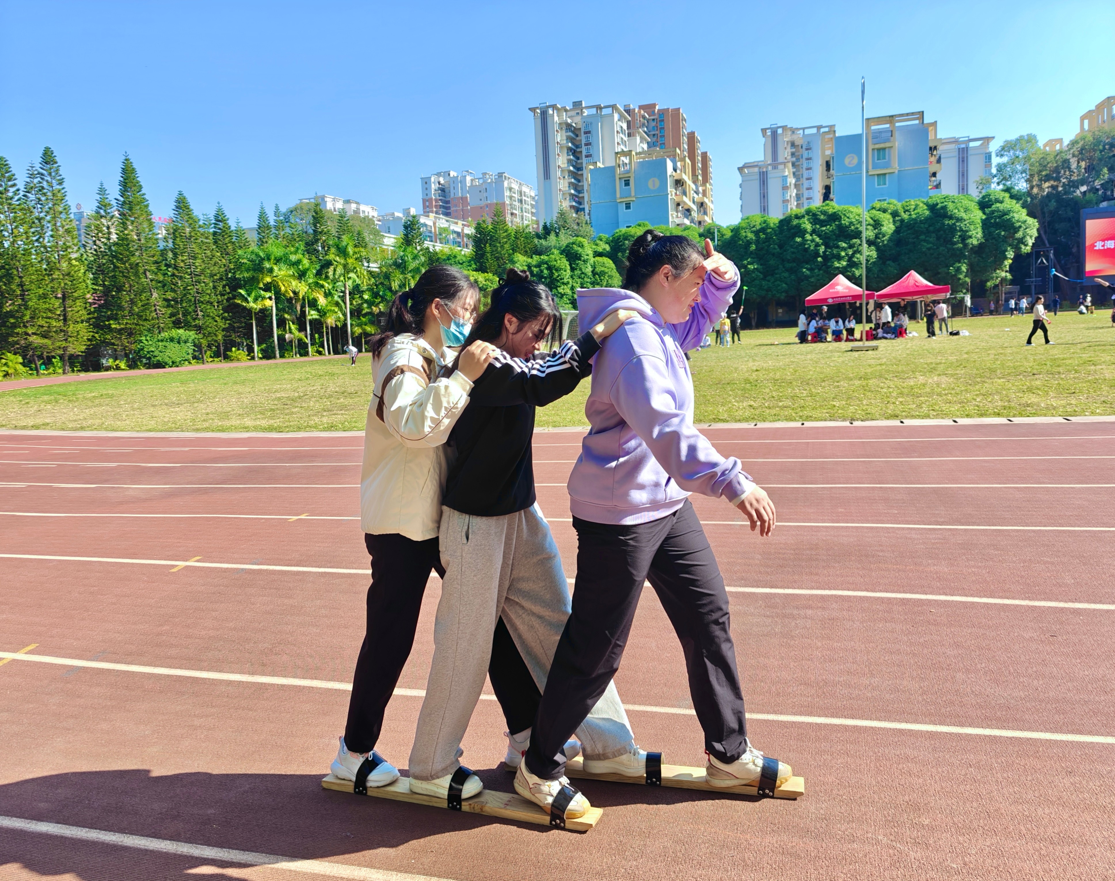 除了学生竞赛外,教职工竞赛也是本次运动会的一大亮点。哲学学院的老师们一改往日严肃认真的教学形象,化身活力四射的运动员。他们在赛场上大展身手,热情高涨,欢声笑语不断,展现出了与平时教学截然不同的一面。这些趣味比赛不仅让老师们放松了身心,更拉近了师生之间的距离。