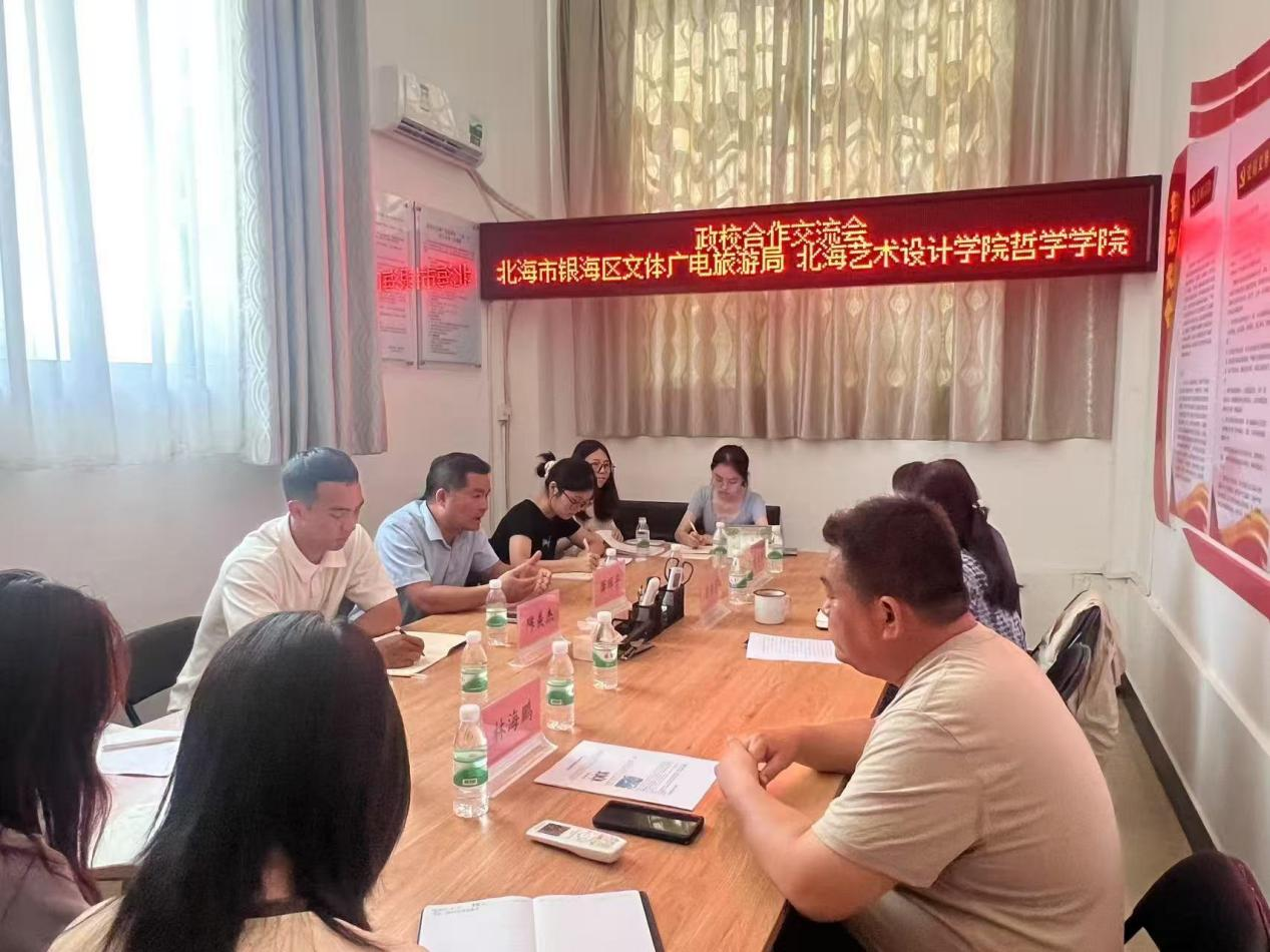 为了进一步拓展学生专业视野,深化政校合作,4月23日,哲学学院哲学专业2022级的4名学生在哲学学院副院长蒋辉平和专业教师陈美杰的带领下,一同前往北海市银海区文体广电旅游局展开政校合作交流会以及专业调研活动。