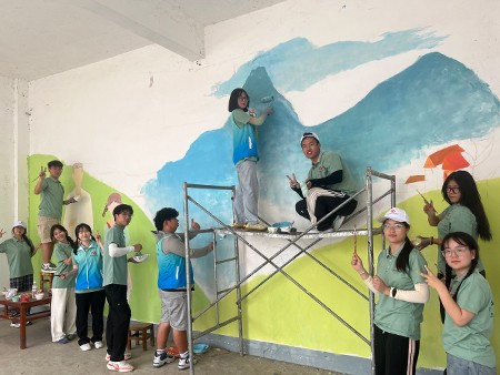 实践团队充分发挥艺术设计专业优势,在魁圩乡九年一贯制学校开设绘画、手工等美育课程,将创意与美感融入乡村课堂。同学们还捐赠了美术教具等用品物资,并精心绘制“安全伴我行”主题黑板报,以专业所长服务当地教育发展。