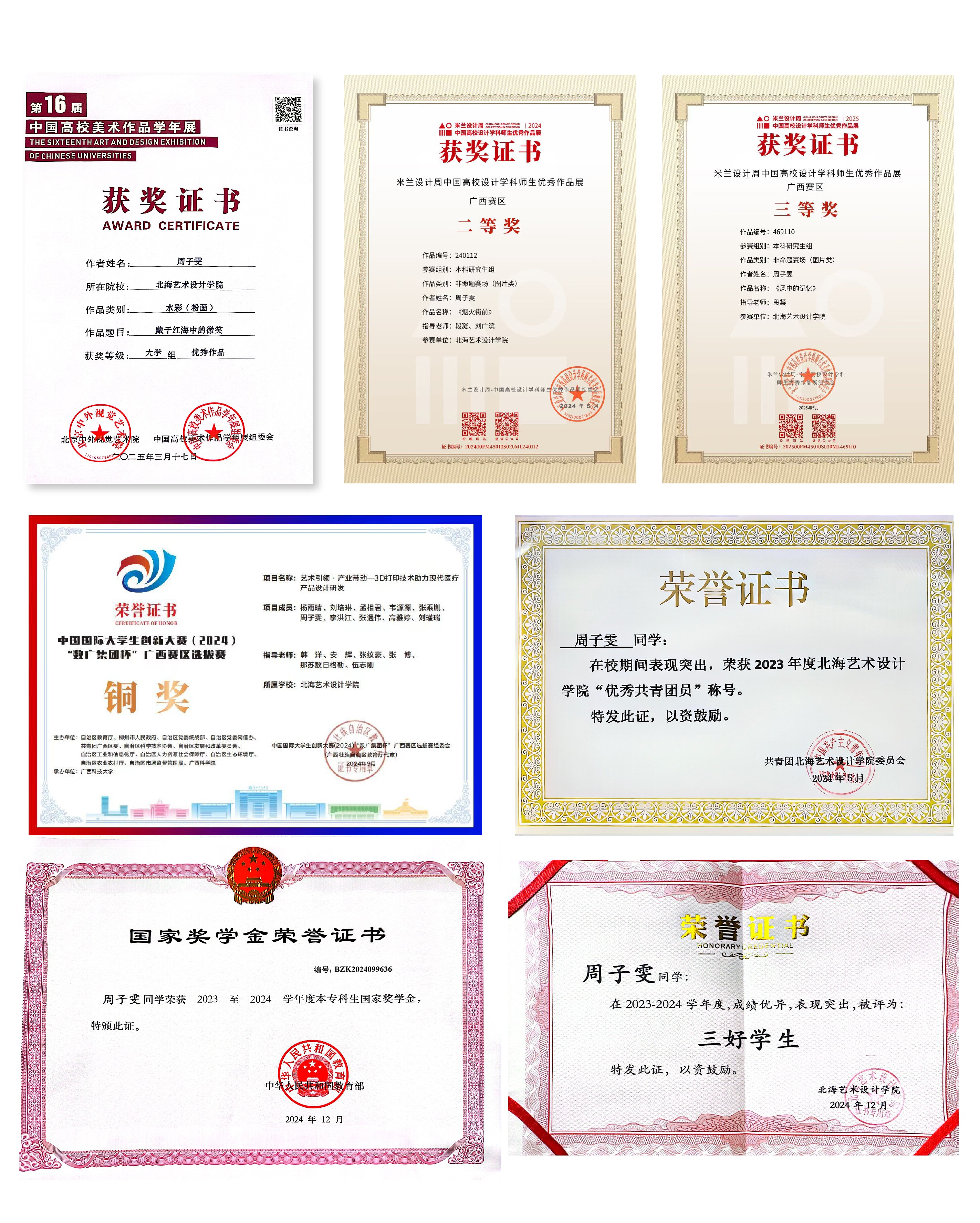 2024年 获 北海艺术设计学院三好学生;