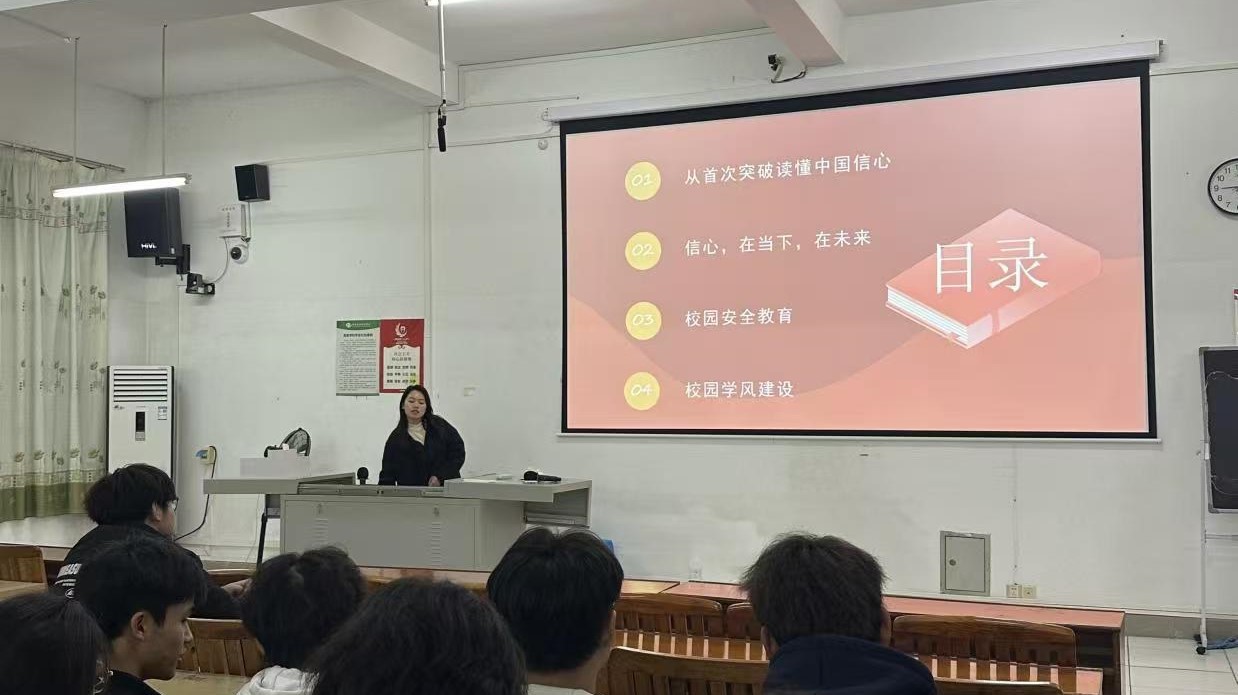我院各班班会的顺利开展不仅增强了学生的爱国情怀和民族自信心,还提高了他们的安全意识和学风建设意识。希望学生们能够将所学应用到日常生活中,为构建和谐校园贡献自己的力量。(黄池,甄雪 摄)