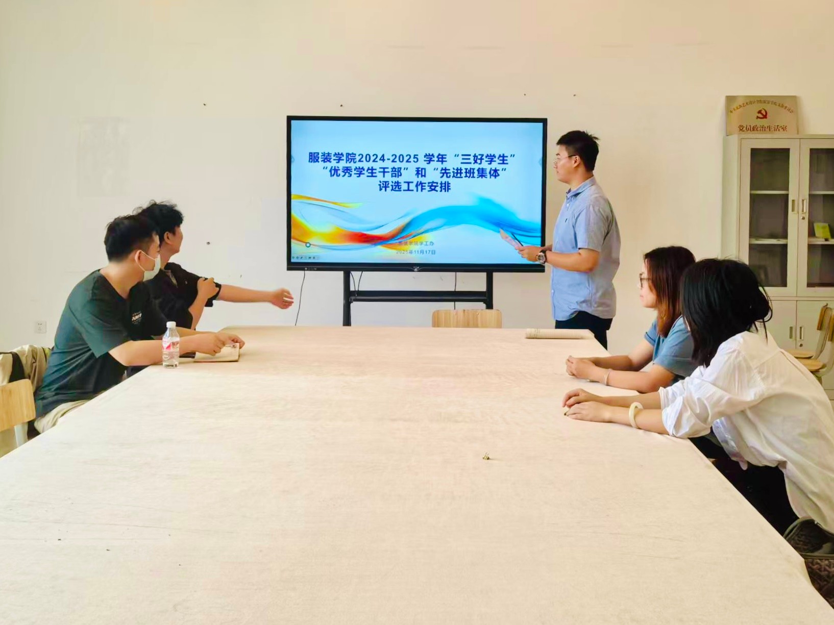 21日上午,服装学院学工办组织召开2024 - 2025学年“三好学生”“优秀学生干部”及“先进班集体”评选会,参会领导有服装学院党支部书记曹永攀、服装学院副院长郝士杰学工办主任曲忠成、综合办主任严嘉宝以及2022、2023、2024级班级辅导员。会议由学工办罗春霖老师主持。会上,曲忠成老师介绍了此次评选条件和要求,此次评选秉持公平、公正、公开的原则,通过学生自荐、班级民主评议、班主任推荐等环节,广泛吸纳各方意见。评审组严格对照评选条件,审慎筛选,最终确定院级三好学生23名,拟推荐校级三好学生11名,同时拟推荐2个先进班集体。