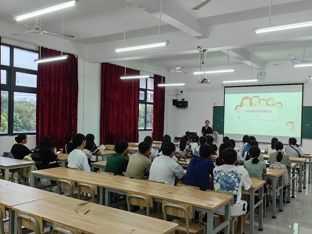 在学前教育专业介绍会中,熊秀峰院长、学前教育教研室主任蒙剑英介绍了本专业的基本情况,结合人才培养方案着重解读了同学们比较关心的本专业培养目标、课程体系以及专业技能要求和毕业要求,讲述了学前教育专业的发展趋势与就业前景,希望同学们勇于迎接专业上的各种挑战,锻炼自己的专业能力,充实大学生活。