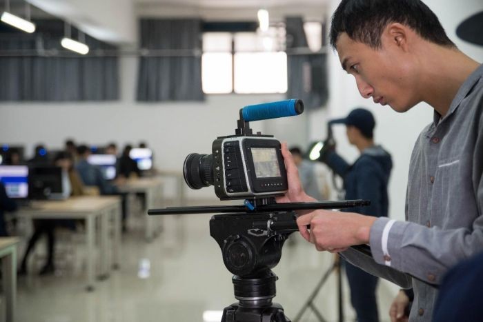 2016年12月24号上午,北海市教育局的宣传片在公德楼308教室开