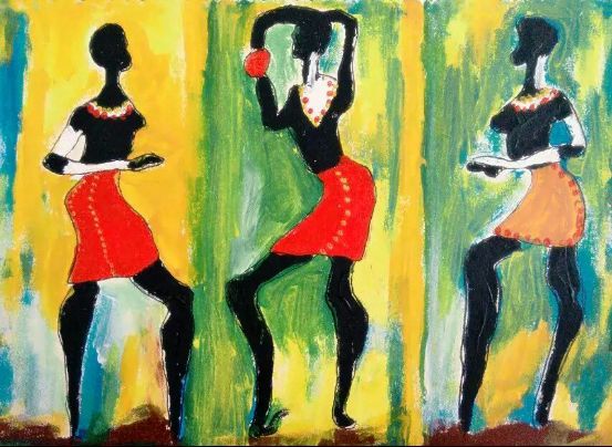记者:你的好些作品里都有很多民族元素,你是怎么想到要在绘画里融入这些元素的?
