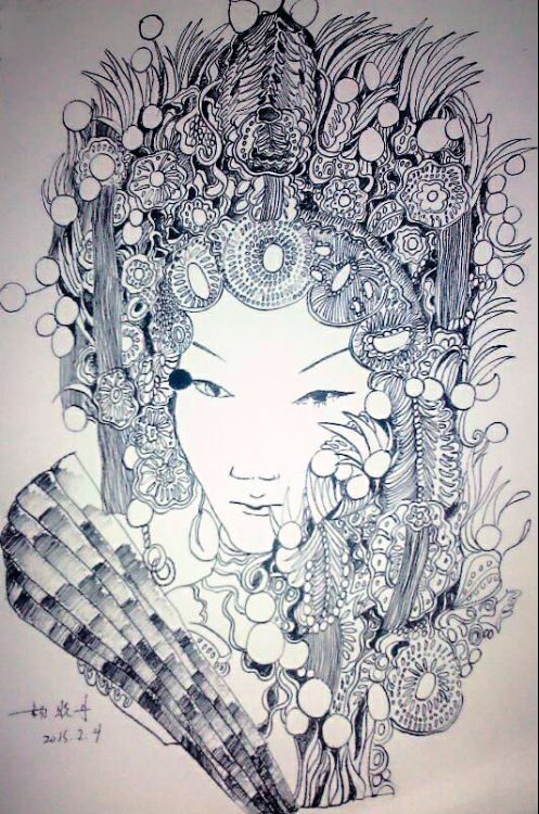 杨晓丹:白描主要是用线条来表现的一种艺术,线条蕴含着中国民族精神的神韵,线的运用构成了以往中国艺术的重要特色,白描巧妙用线来表现美感,所以我就这样爱上了白描。