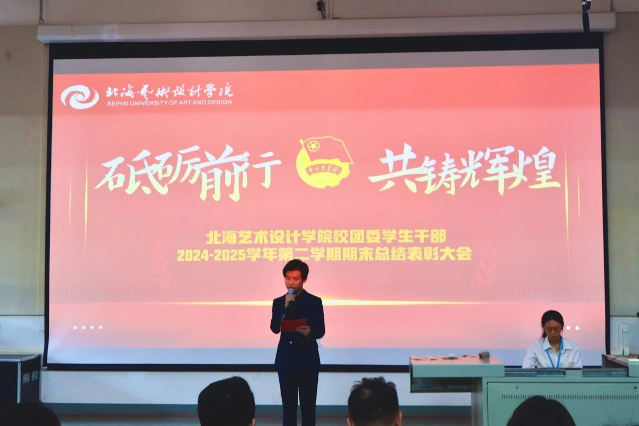 团委书记唐良春为各学生组织代表颁发聘书,并与聘书代表合影留念,这一仪式不仅是对学生组织代表过往努力的肯定,更象征着他们肩负新的使命与责任,激励着他们在未来继续为学校和同学们贡献力量,推动校园文化蓬勃发展。 接下来,由唐良春书记总结发言,他首先感谢所有老师和同学们的辛勤付出,并对本学期开展的一系列活动表达了高度的认可。接着,回望过去,展望未来,唐良春书记提出四点希望:一是融合“团组织+艺术”赋能思政;二是依托学科优势,让活动创造价值;三是将知识用于实践,在服务中成长;四是秉持服务宗旨,凝聚力量打造北艺辉煌。 最后,唐良春书记预祝同学们期末取得佳绩,度过美好假期,希望大家以此次总结为新起点,携手谱写北艺新篇章。 本次大会圆满落幕,既是对本学期工作的完美总结,也为下学期的工作锚定清晰航向。相信全体学生组织成员定会怀揣热忱、步履坚定,无畏新征程的挑战,携手绘就属于学生组织的璀璨新篇!(陈韵丹、潘倬逸/摄)