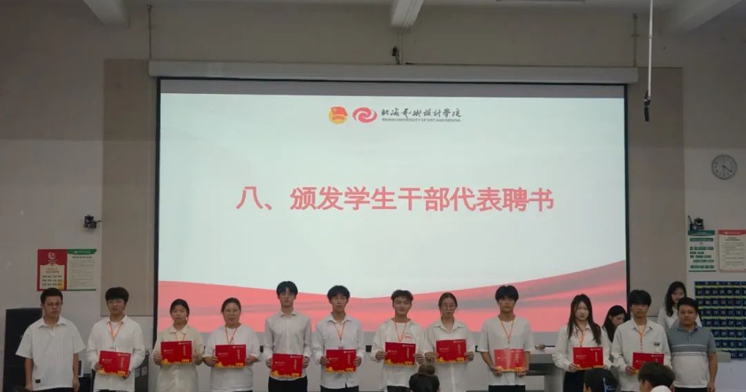 出席本次大会的领导老师有团委书记唐良春、团委办公室主任曹永攀、团委组织部部长陈文斌、社团管理部部长杨美琪、新宣部指导老师林修竹、艺术团指导老师陈万奇、张启源、团委老师王燕亭。 本次大会共分为三项议程 大会第一项议程:各学生组织做工作总结。 一、校学生会 学生会执行主席团成员代表学生会各个部门做工作总结以及工作计划。她列举出各个部门这一年来所开展的活动,对收获的工作成效给予了充分的肯定,同时也根据各部门所存在的问题提出了相应的改进意见。表示在未来的工作中,学生会将继续团结协作,用心投入到工作中,并且会做好充足准备,迎接九月份迎新志愿者活动。 二、校团委秘书部 秘书部负责人首先展示了往期工作,其次汇报了整体工作总结,罗列出部门存在的问题以及解决方式,最后提出未来展望,他们表示会保持初心,坚持严谨认真的工作态度,做到大事不误、小事不漏,以实干促成效,同时会加强秘书部作为中枢部门的纽带作用,积极配合各个方面的工作。 三、校团委组织部 组织部负责人表示,在过去的三个多月里,在校团委老师指导带领下,各项工作有序进行且出色完成。在新学期里,会继续保持不忘初心,秉持上学期优秀经验,同时谋求创新,不断总结经验,积极反思。 四、校团委青年志愿者协会 青志协负责人先解读了往日的工作,然后提出未来工作计划以及四点改进方案: 1、协会成员的自身建设。2、丰富活动内容。3、改革创新活动形式。4、对待问题早发现早解决。 五、校团委新媒体宣传部 新媒体宣传部负责人首先对部门工作情况进行了总结,接着对本学期制作的海报、幕布和推送的文章进行了展示。最后,提出了工作展望,表示在接下来工作中会勇于创新,提高工作效率,加强各部门之间的联系。 六、校艺术团 艺术团负责人归纳总结了本学期的进步以及不足之处,并且制定了下学期工作计划,希望能保持对团的热爱,延续团内和谐的氛围,出现问题及时沟通,坚持对训练和活动的积极性。 七、社团管理部 社管部负责人对工作进行回顾总结,接着提出未来工作计划,表明未来要贯彻对工作高度负责的精神,脚踏实地,尽职尽责的做好每一份工作。 大会第二项议程:颁发学生干部代表聘书。 大会第三项议程:校团委书记总结讲话。 最后,由团委书记唐良春总结讲话。首先他对学生组织本学期开学以来的努力工作表示肯定与赞赏。其次,他也提出了工作汇报存在的问题,最后,他希望各学生代表能够勇于表达自己,汇报时能够展现自己部门特色,同时不断突破自我,让每一位学生代表都能成为北艺的闪光点。 至此,2022-2023学年第二学期校团委期末总结大会顺利结束。在新学期的工作中,学生会全体成员将继续践行全心全意为同学服务的宗旨,以踔厉奋发、笃行不怠的昂扬风貌迎接新的挑战,以焕然一新的面貌取得更加辉煌的成就。(瞿晶晶、丁泓尹/摄)