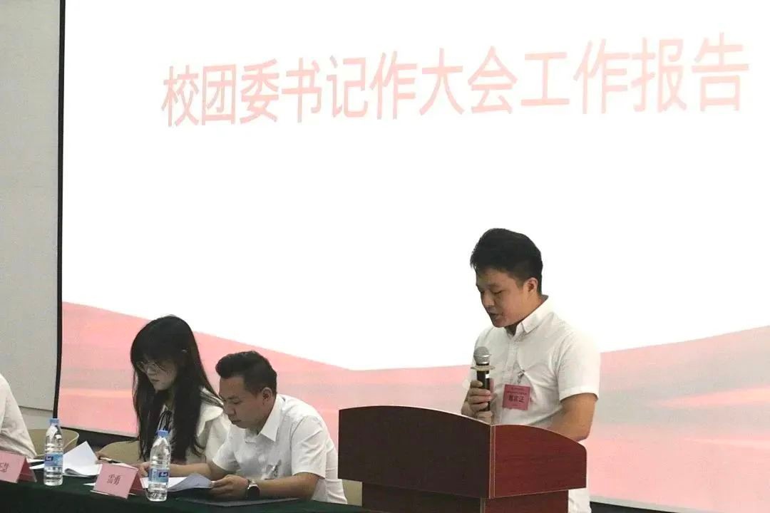 校团委书记唐良春作大会工作报告,首先唐良春书记客观评价了第十五次学代会以来的学生会工作,科学规划今后一个时期的工作目标和任务。其次他提出学生会应夯实基础,脚踏实地,组织建设凝聚学干力量;育人为本,创新争优,思想引领促进全面发展。接着他指出,学生会虽然取得了一定成绩,但在某些方面也存在不足之处,对此,他提出几点希望:坚定一个信念,用思想引领校园生活,大力倡导社会主义核心价值观,不断加强大学生思想道德建设;完善一种模式,用特色助力学生成长,不断加强组织建设,全面提高学生会的战斗力;创新一项体系,设计具有针对性、实效性、可操作性的文化项目体系。同时强调我们需不忘初心,砥砺前行,以“服务师生”为核心,做到五个坚持,为学校发展添砖加瓦,为北艺腾飞建功立业。
