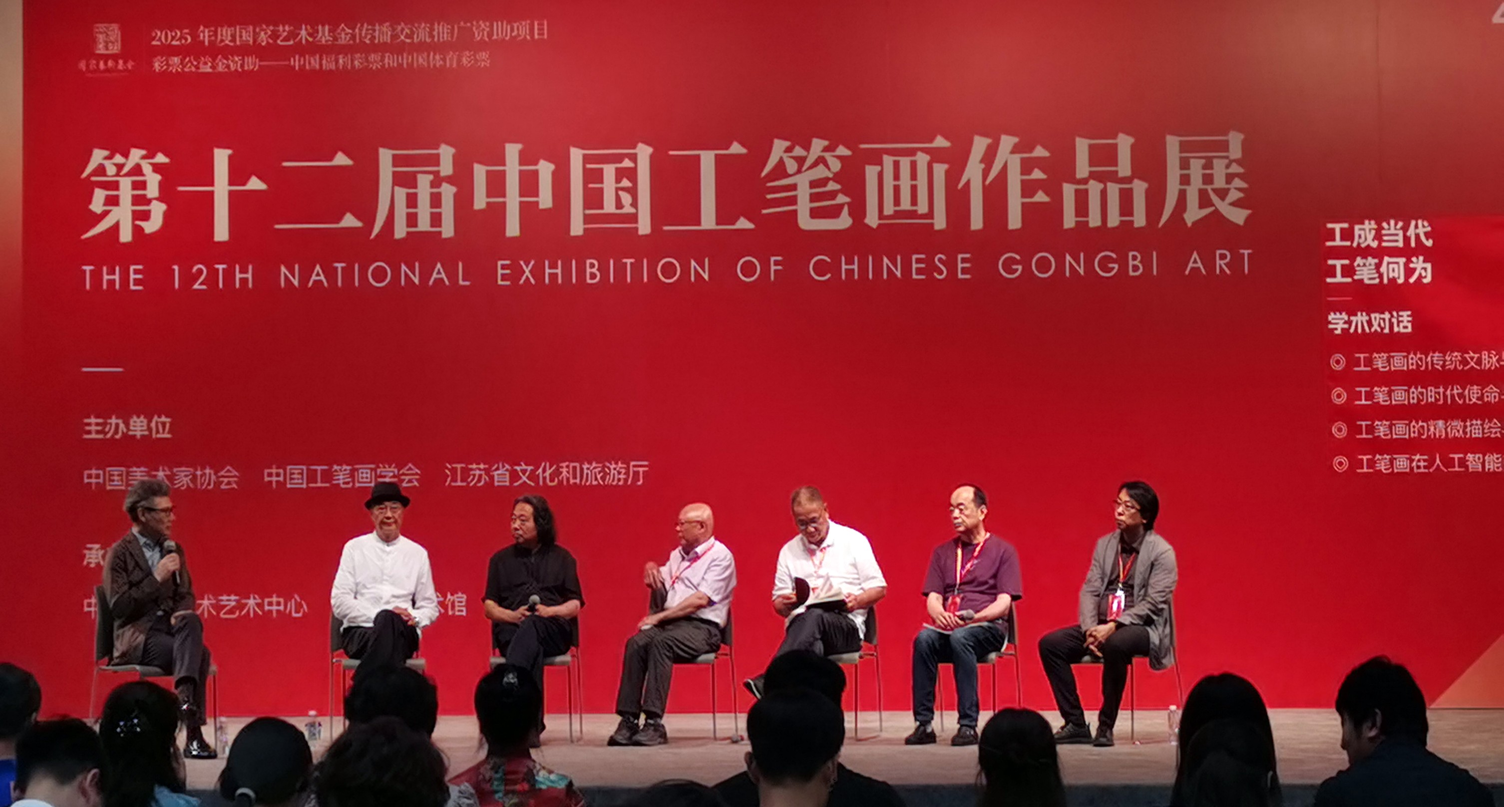 6月10 日,第十二届中国工笔画作品展在江苏省美术馆盛大开幕。此次展览由中国美术家协会、中国工笔画学会、江苏省文化和旅游厅联合主办,以“工成当代・固本开新” 为时代命题,集中呈现了中国工笔画在新时代语境下五年来的创作成果。我校教师陈建江作品《德峨赶圩之蓝靛集市》入选此次展览,并受邀参与此次盛会,在展览中汲取艺术养分,并通过学术交流活动拓宽创作视野。