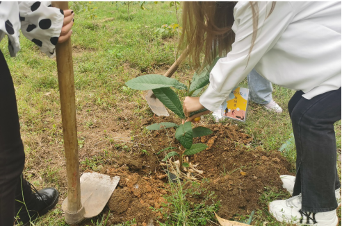 你种树,我除草,枝头小鸟齐欢叫;织一件,绿长袍,披在祖国山河上。大家在欢声笑语中种下希望。学院的李谦老师告诉大家,20年前学生九栋宿舍楼前也是这样的树苗,如今大家已经看到了苍天大树!过几年大家带着孩子返校也可以分享我们今天的劳动成果了!实实在在的造福后人的造林活动,多么生动现身说法!