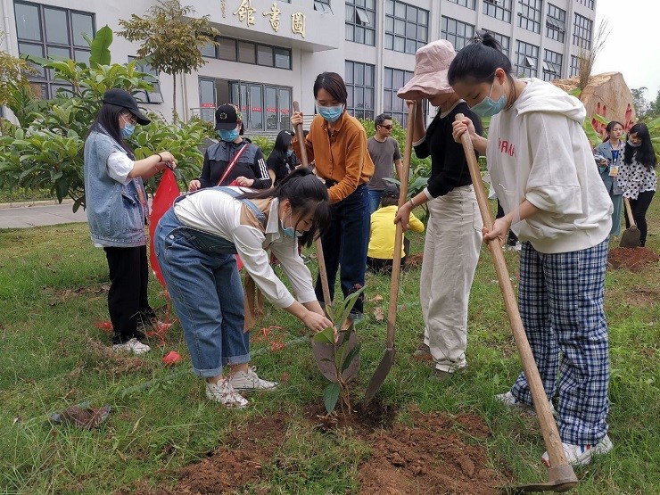 2021年3月12日,我院党支部和分团委的老师同学们,在草地上种下了一颗颗希望的树苗。师生们畅所欲言,纷纷献策怎样保护幼苗,助力小苗快长快大。分团委纪检部陈沁同学说要亲自设计小牌匾,让大家了解和参与爱护活动。