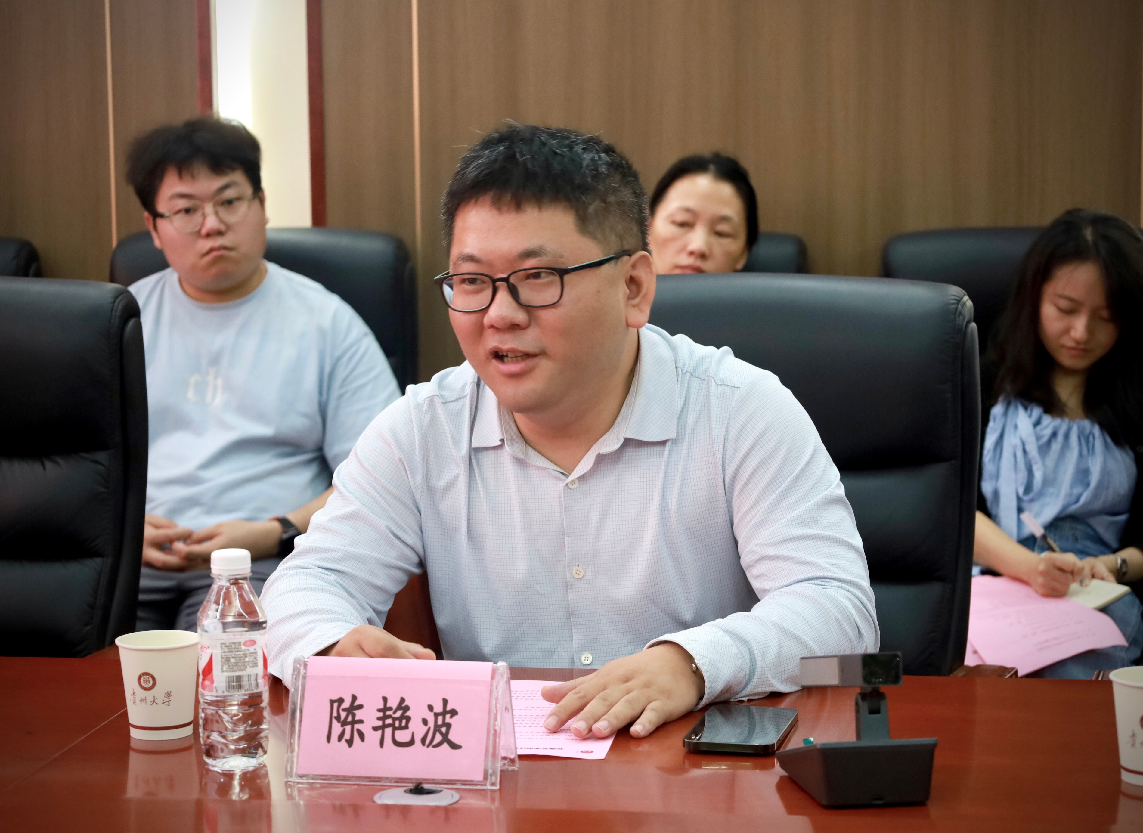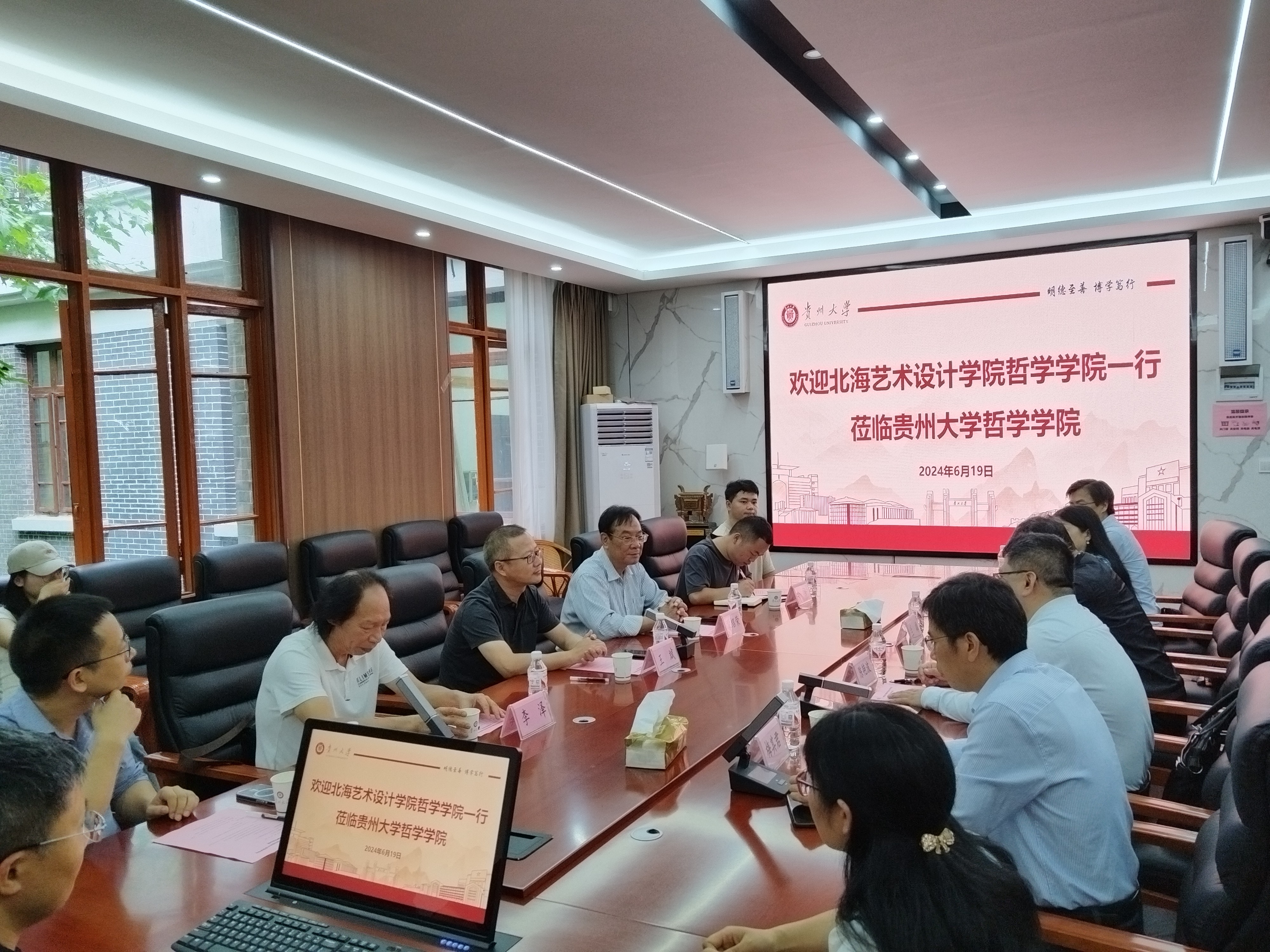 6月19日上午,贵州大学哲学学院与我校哲学学院研讨交流会在贵州大学东校区人文楼217会议室举行。会议由贵州大学哲学学院党委副书记黄梅主持,贵州大学哲学学院院长陈艳波、正处级组织员兰雄、副院长梅其君,北海艺术设计学院总督学王斌、哲学学院院长蒙绍荣、副教授李泽等两校领导教师16人,还有7名研究生一起参会。