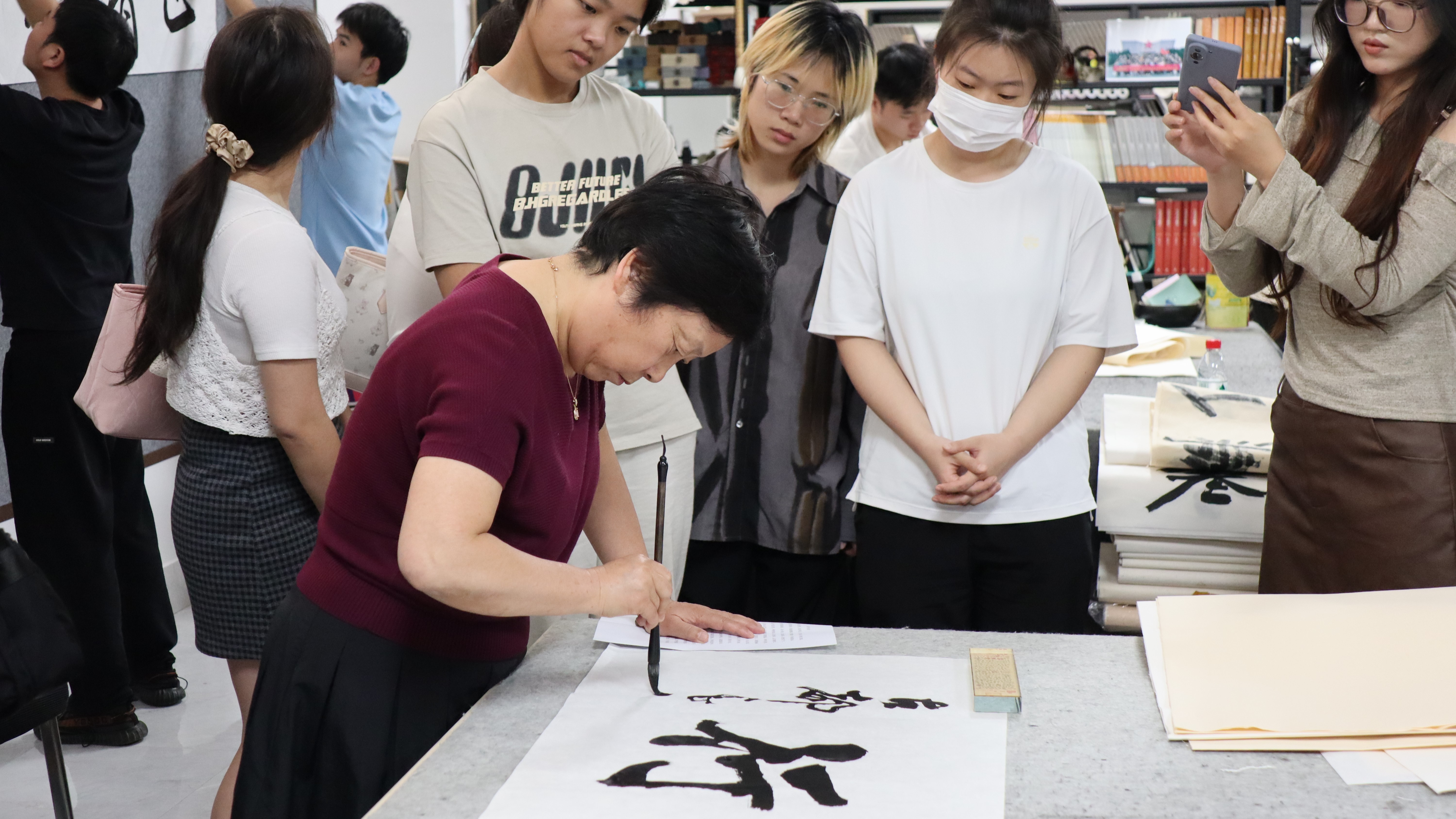 此次书法艺术座谈会及交流笔会不仅为同学们提供了一个学习进步的平台,也促进了书法艺术的传承与发展。相信在大家的共同努力下,书法艺术将会焕发出更加绚丽的光彩。(张天赋 摄)