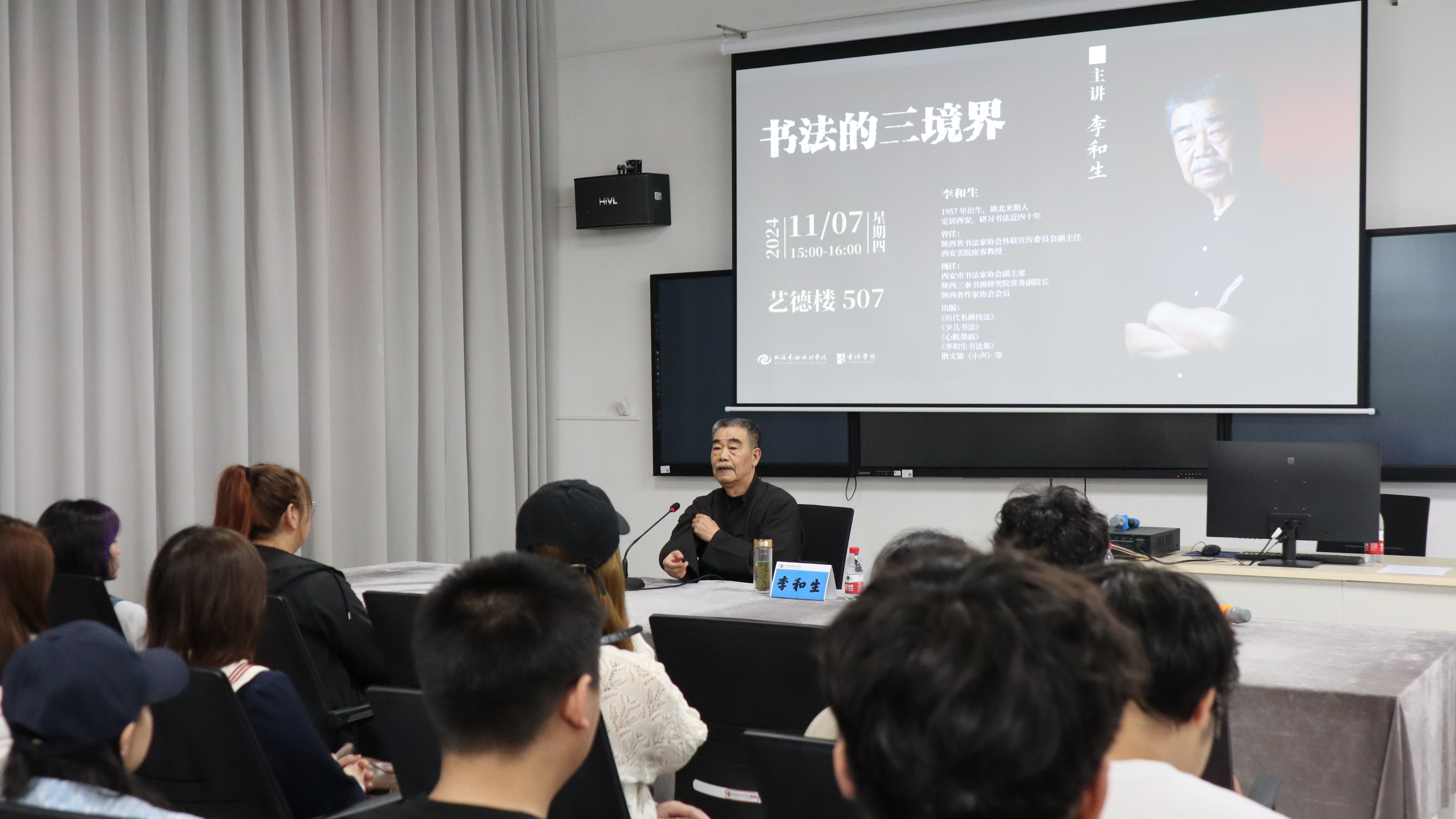 李和生副主席以“书法的三境界”为主题,深入浅出地阐述了书法艺术的三个层次:技法、意境与人格。他强调,书法不仅仅是文字的书写,更是情感与思想的传递,是书者内心世界的表达。李副主席通过生动的讲解和丰富的实例,带领大家领略了书法艺术的博大精深,让在场的每一个人都受益匪浅。