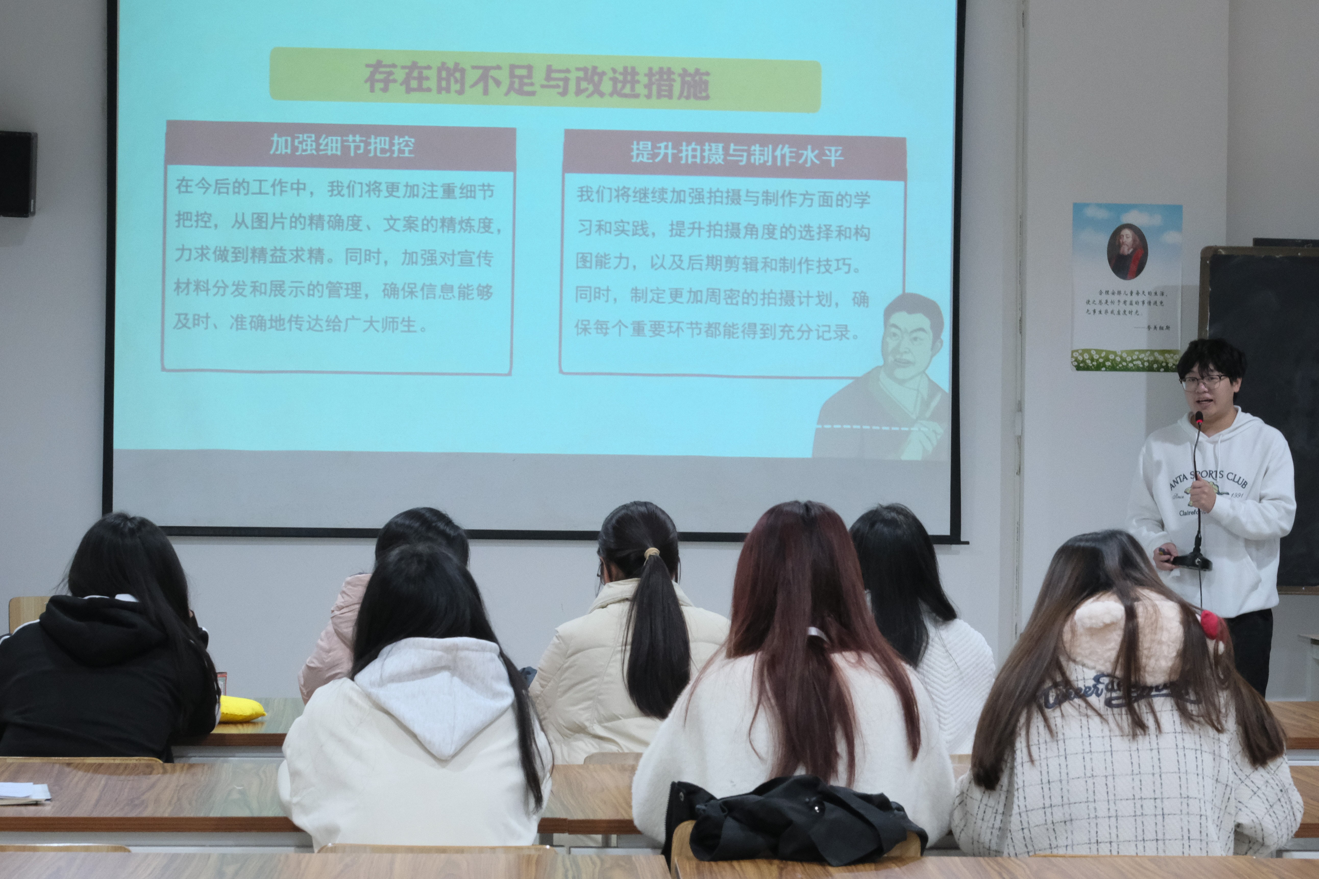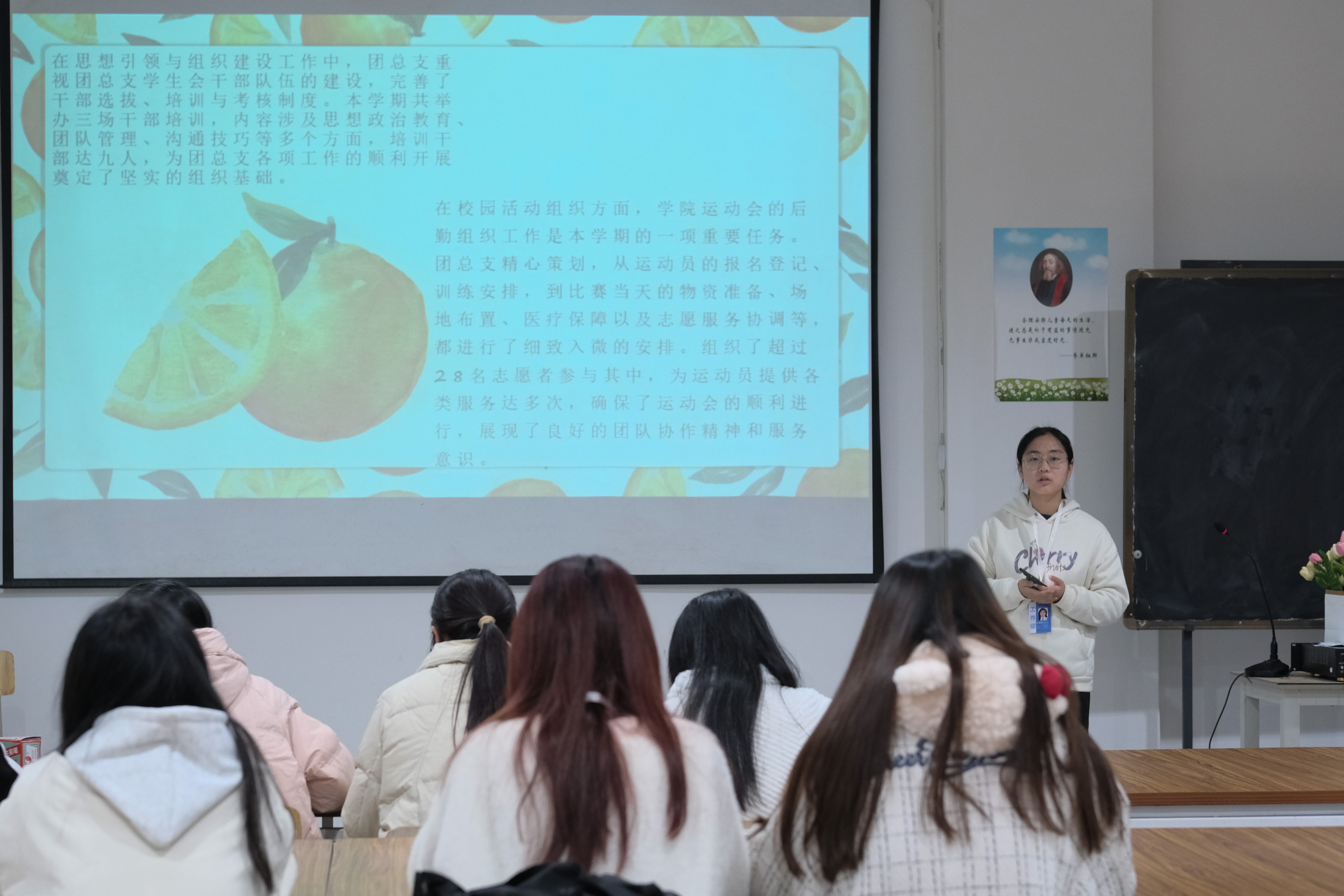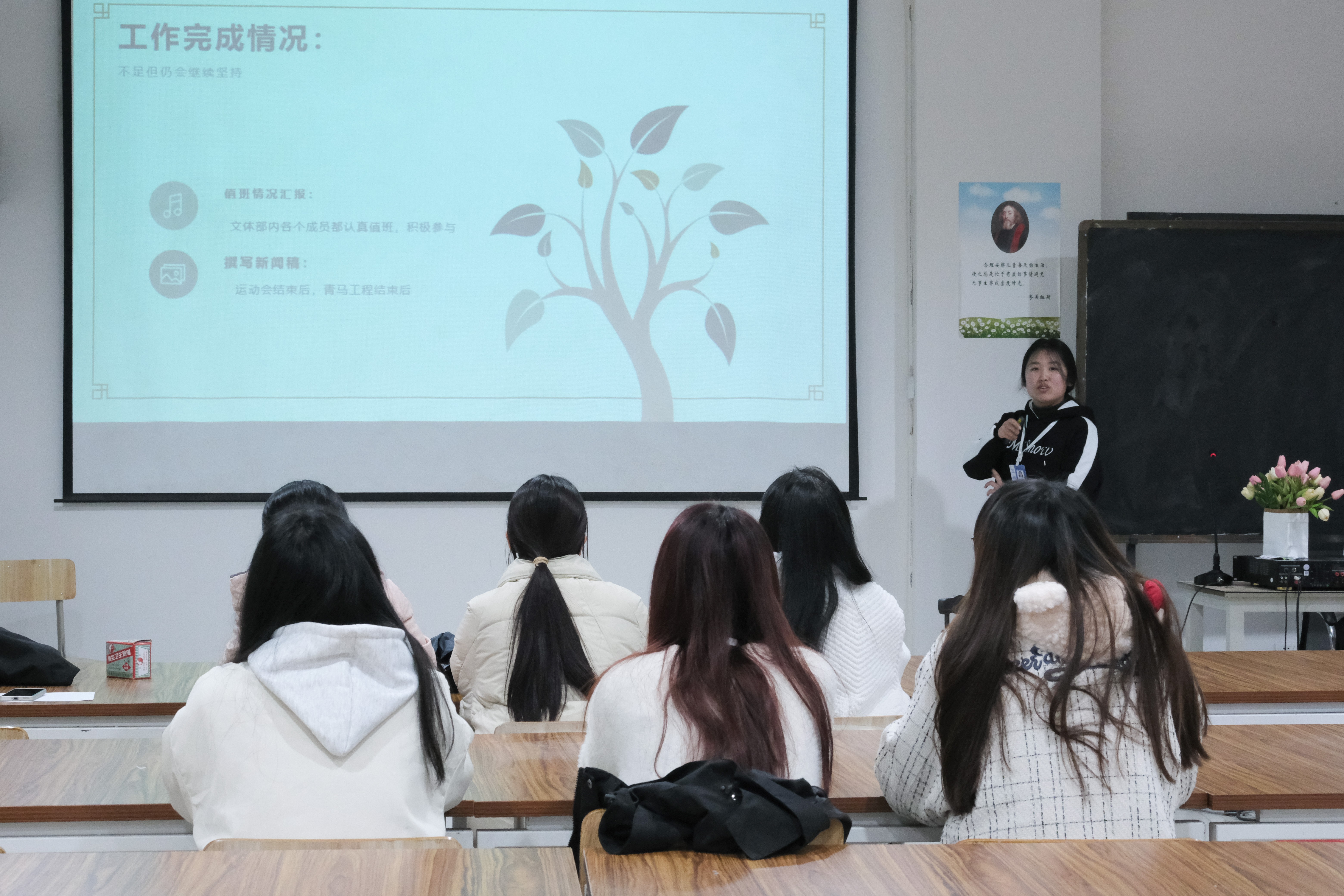 文体部部长马雨静在会上进行工作汇报