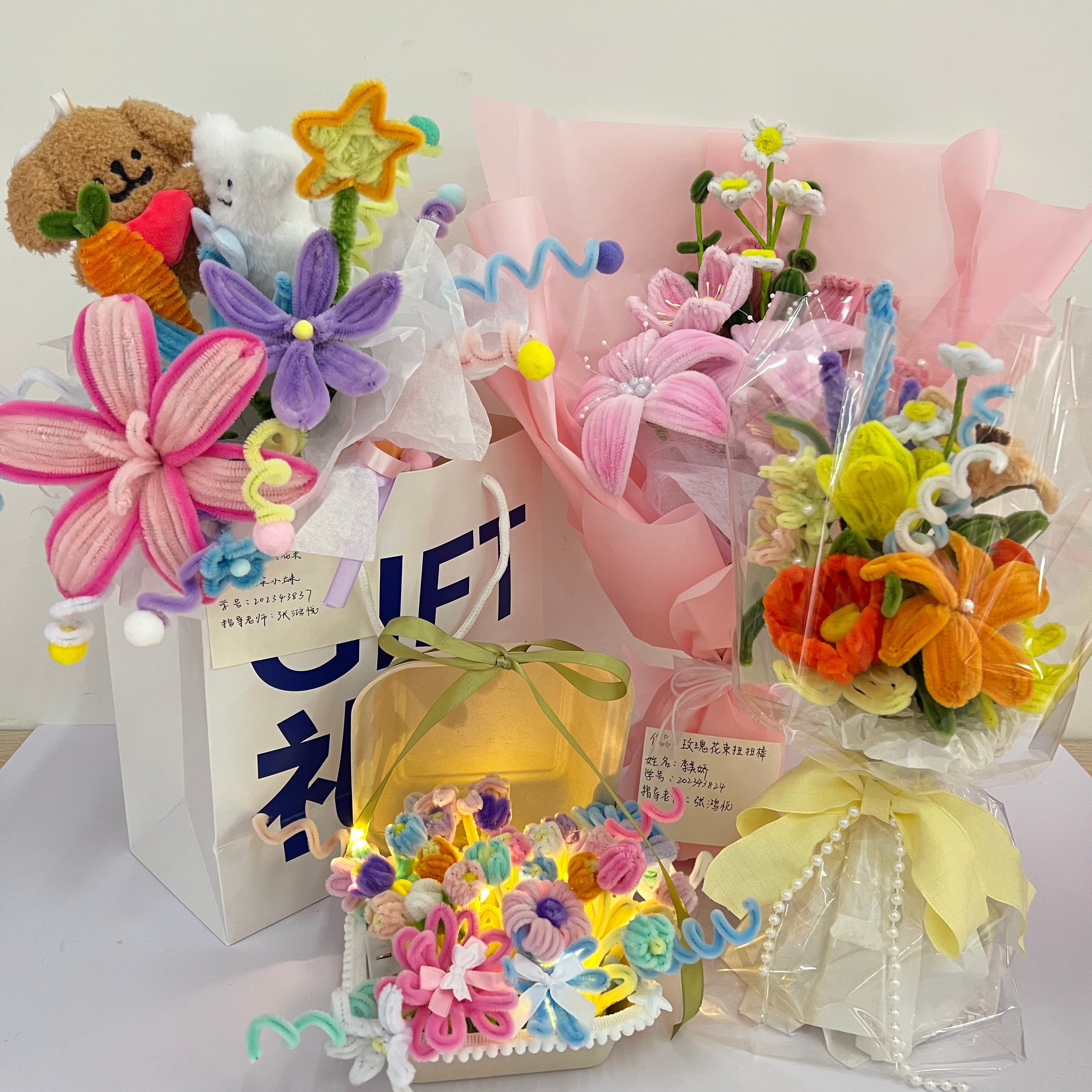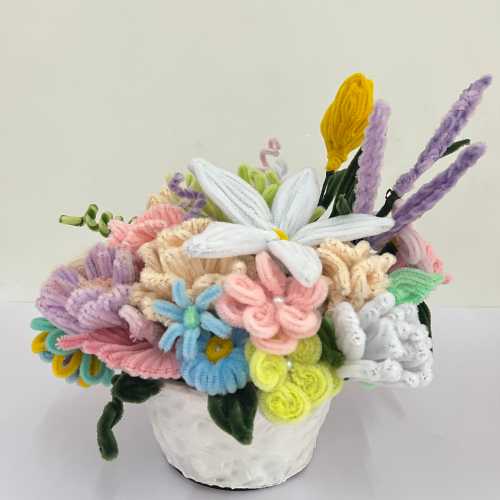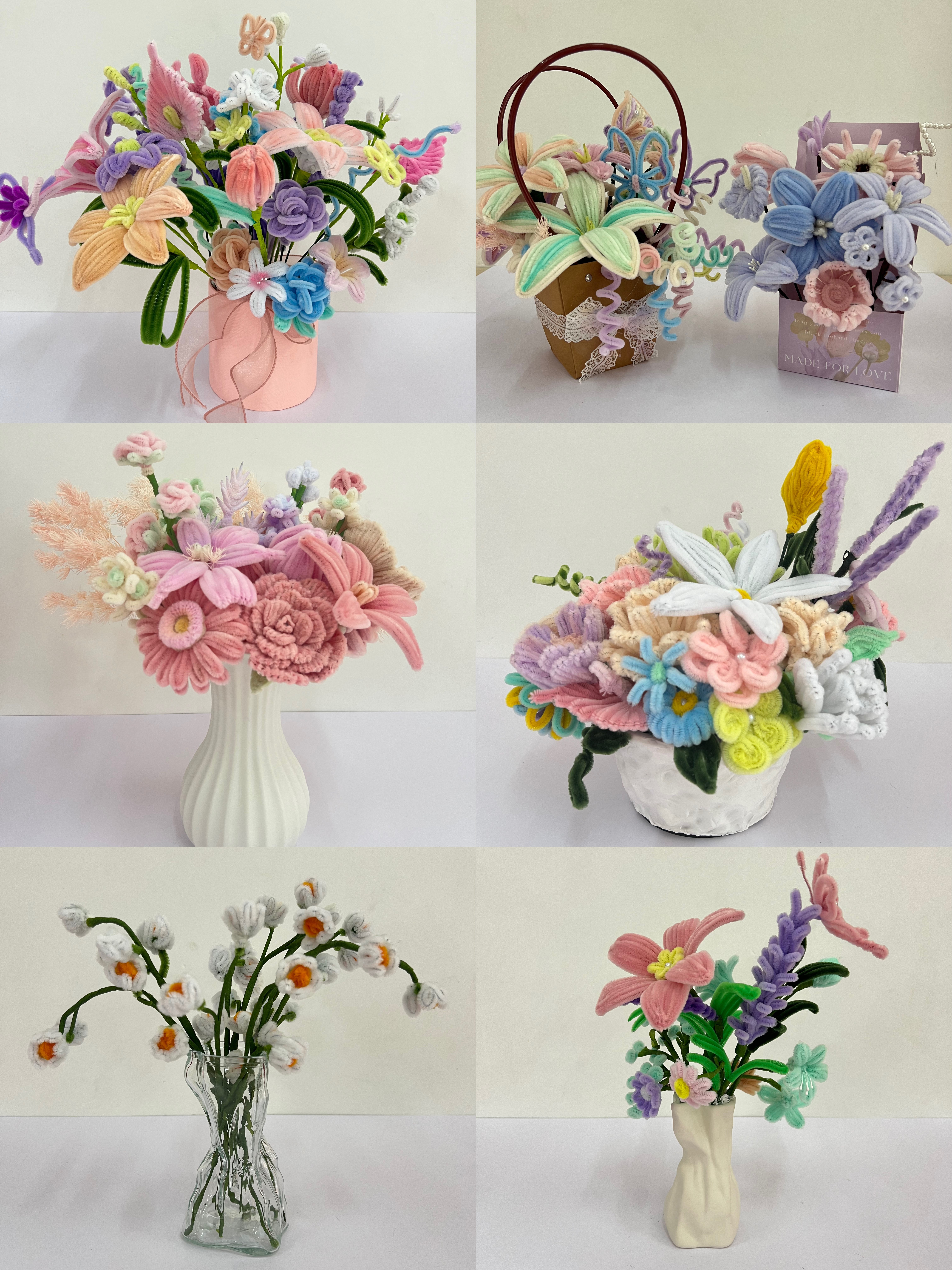 同学们巧妙地运用扭扭棒柔软、易塑形的特性,经过整体配色、制作花朵叶子及配饰,最后创意组装,塑造出花朵的生机。作品可以运用在课堂教学、教室装饰、节日活动中,用途广泛。