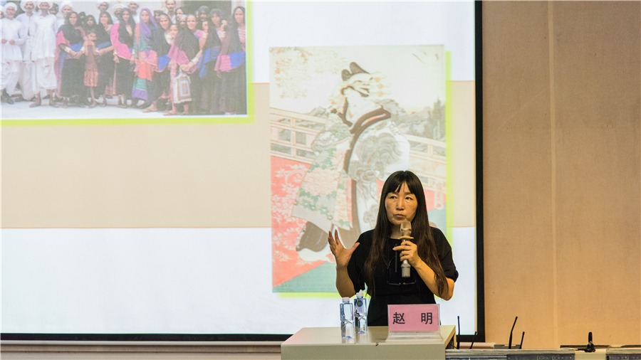 讲座开始,赵明教授从地域学视角,结合东西方服装构建的差异,构建了东西方服装的框架,由浅入深探讨了服装的本质观念。赵明教授表示,在以时间为纵轴的基础上,我们需要寻找对立面,研究方法论来观察事物的本质特征。